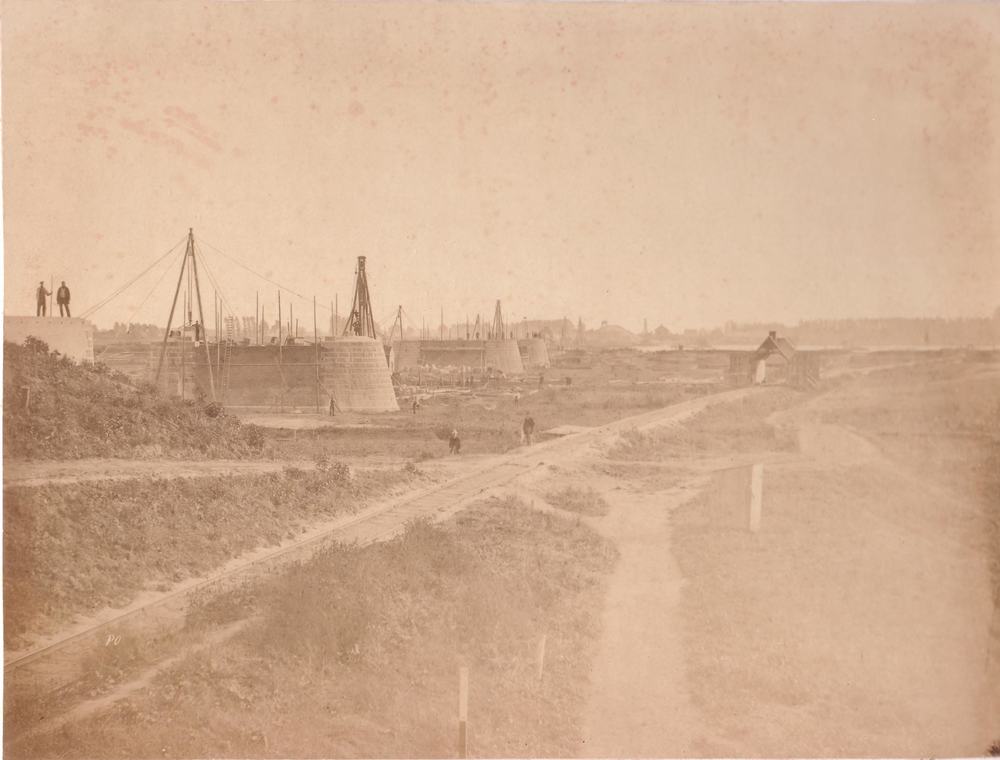 Aanleg spoorbrug bij Zaltbommel 1866