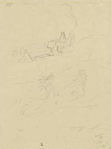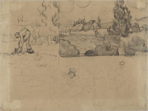 Landschap met cipressen en studies van figuren
