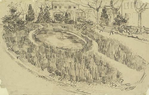 Park met vijver voor het Gele Huis