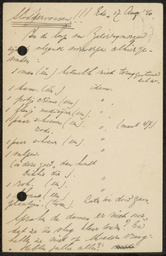 Briefkaart, Den Haag 13 VIII 1940