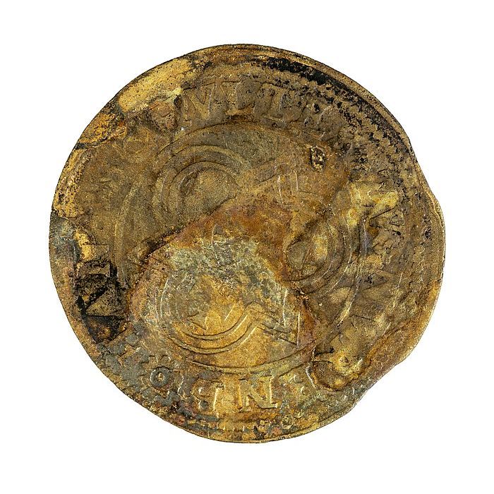 Koperen cliché voor het wapen van Rotterdam met twee...
