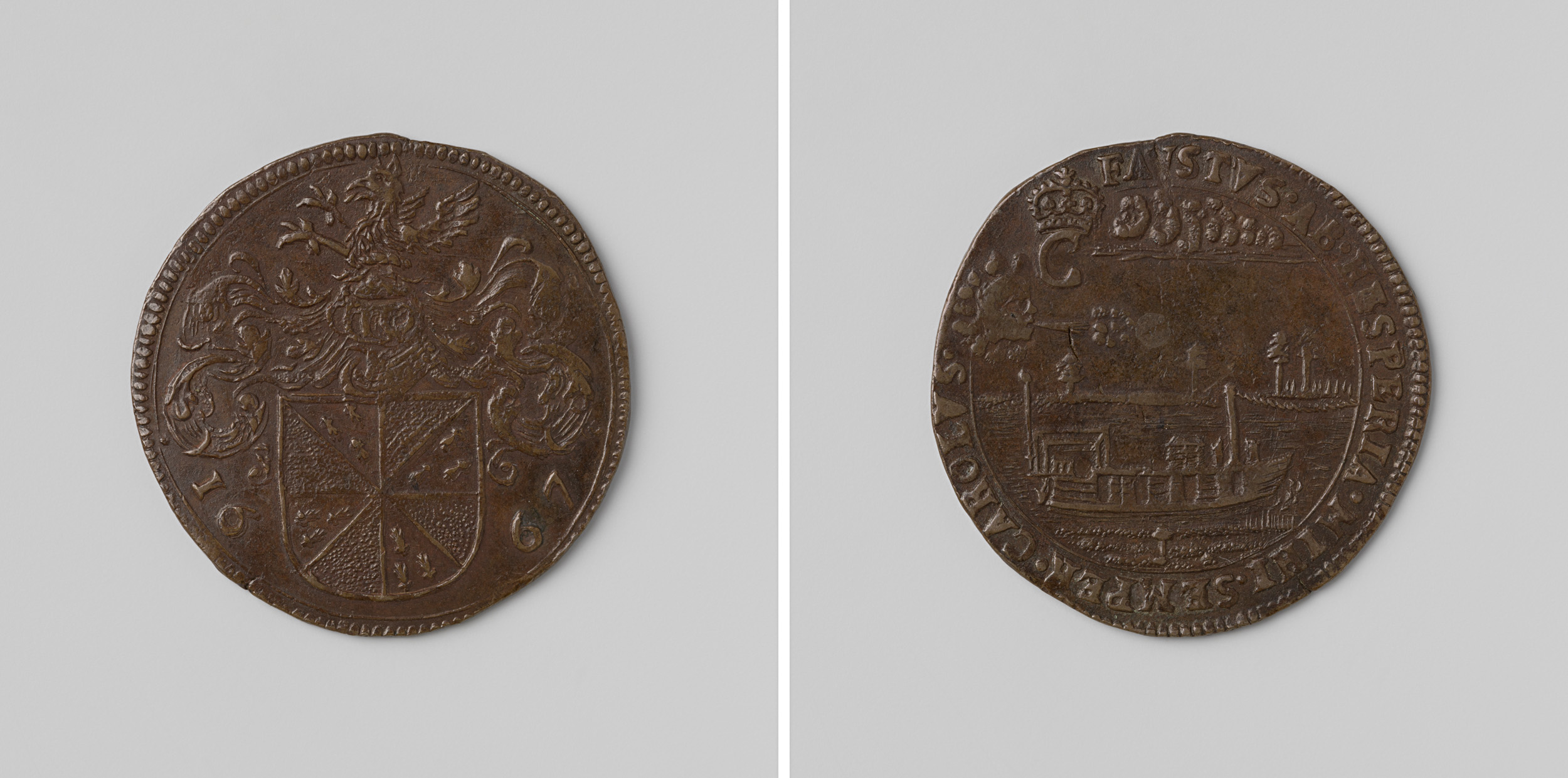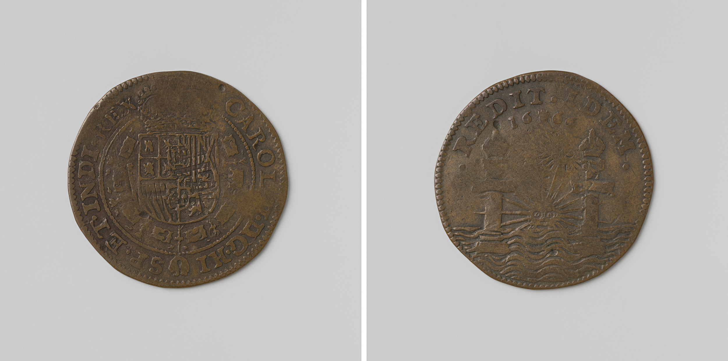Karel II, koning van Spanje, rekenpenning geslagen o...