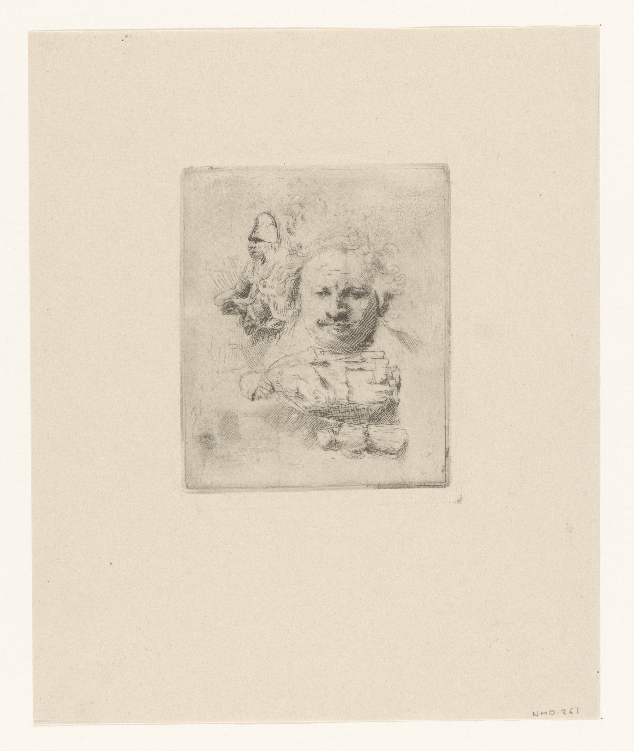 Sheet of studies with the head of the artist, a begg...