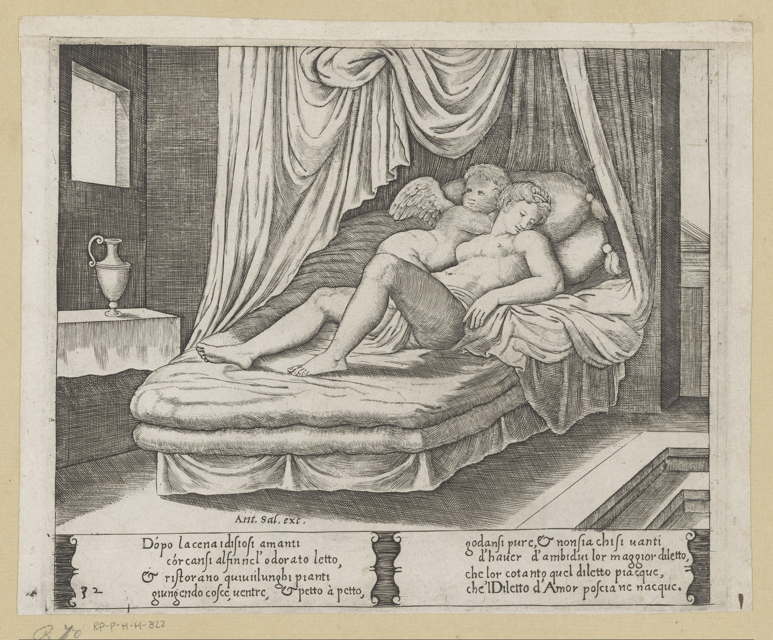 Amor en Psyche samen in het huwelijksbed