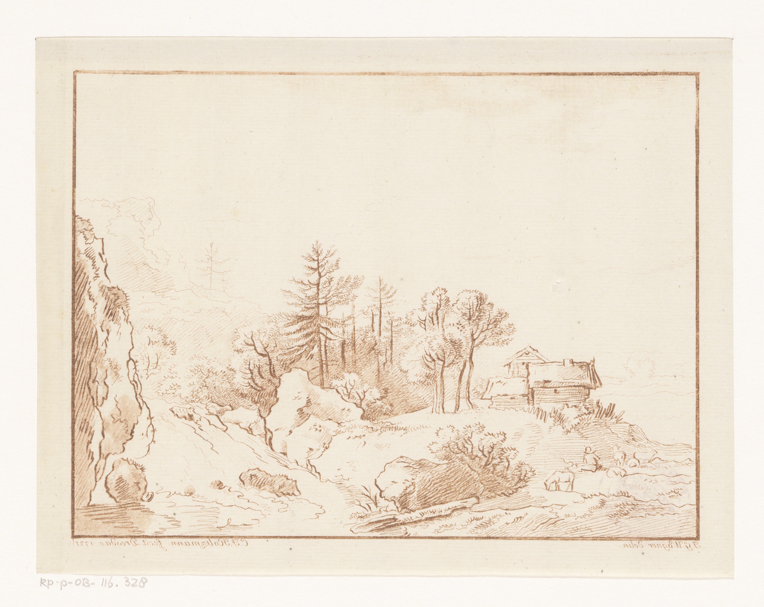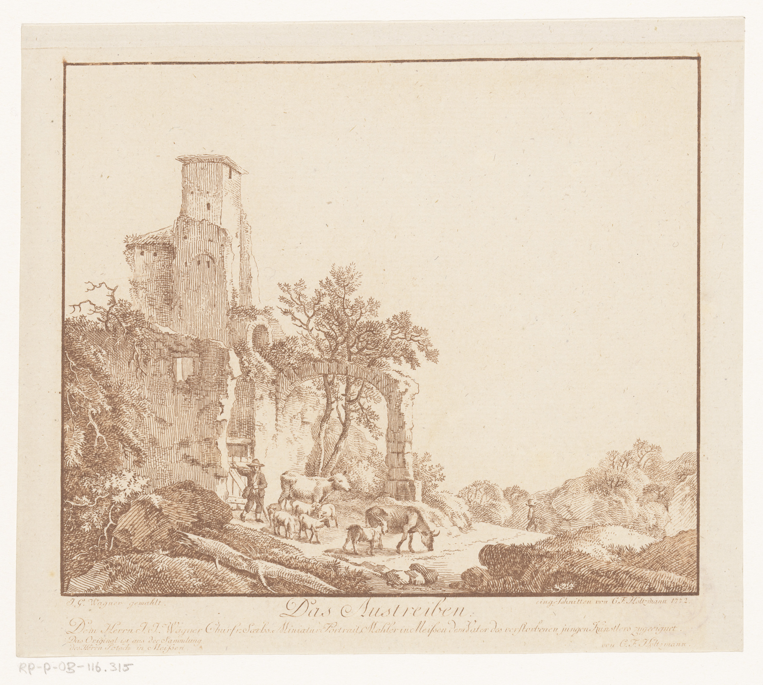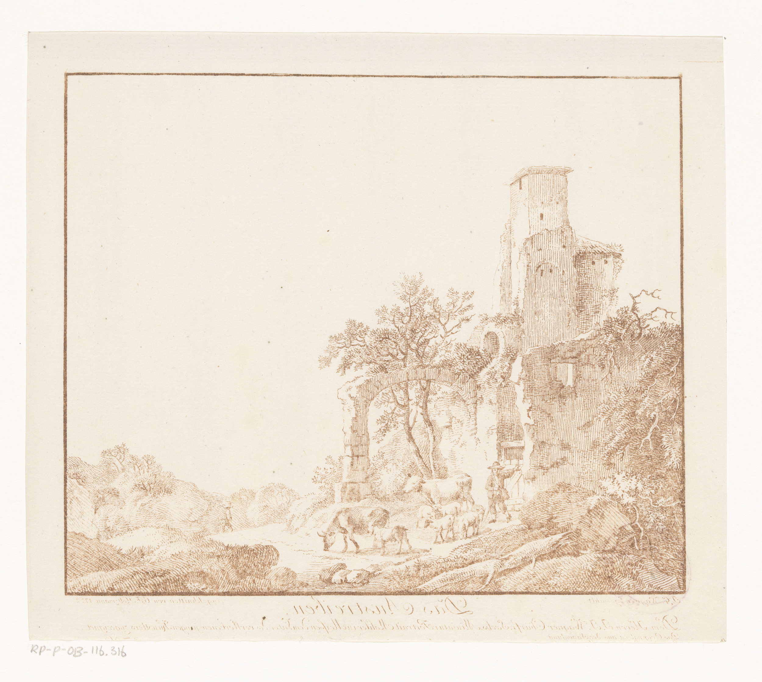 Landschap met ruïne en een herder met vee