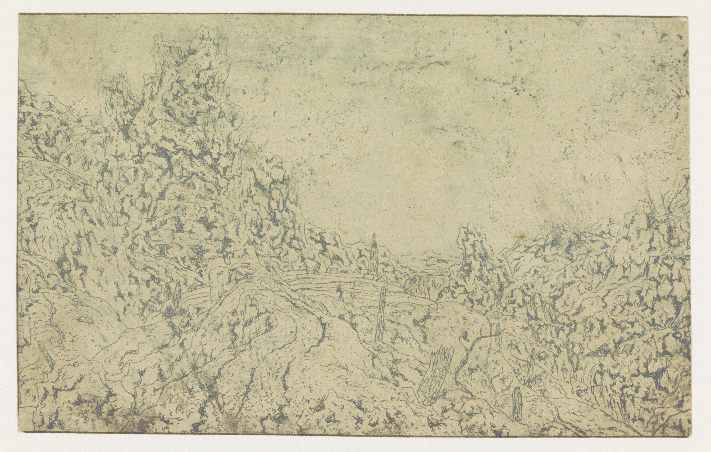 Rotsachtig landschap met een hoge toren