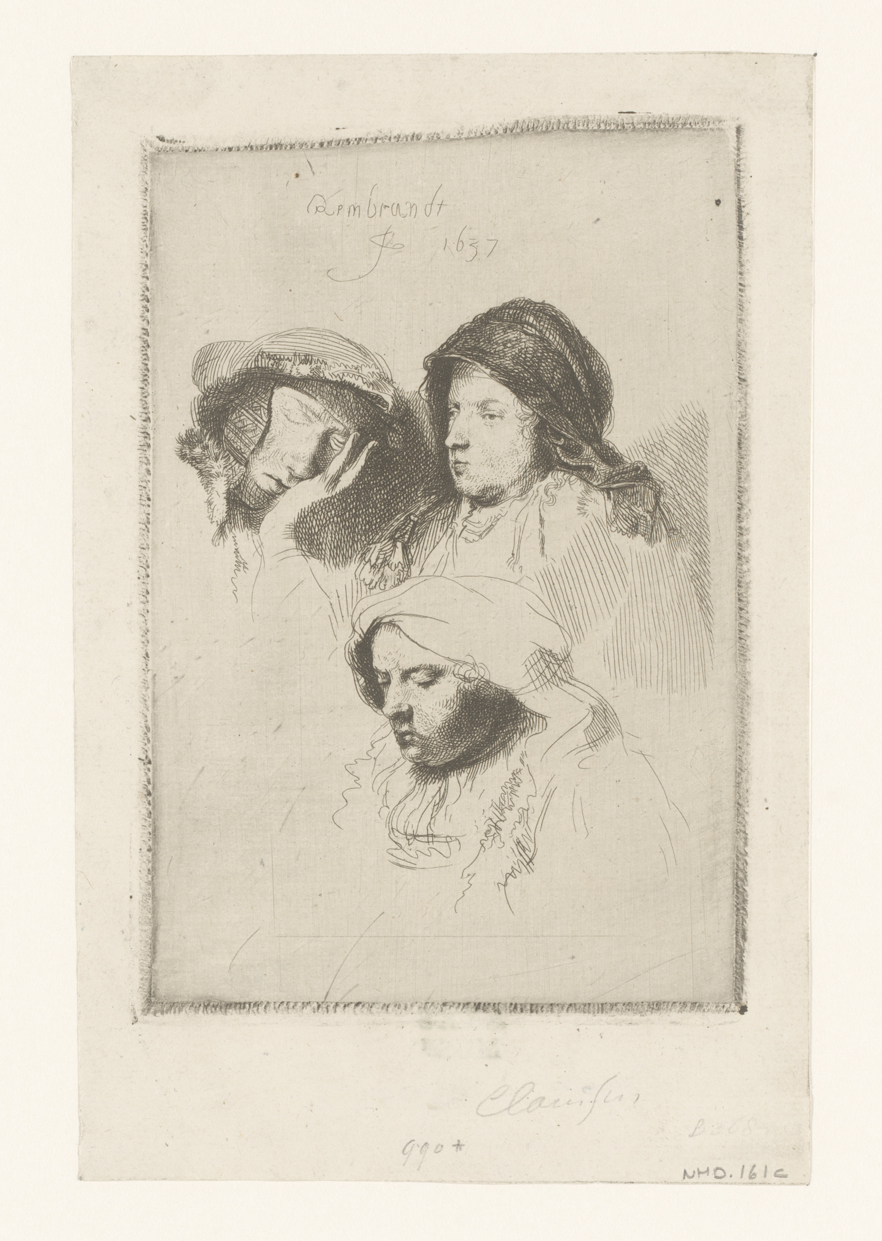 Three heads of women: one asleep