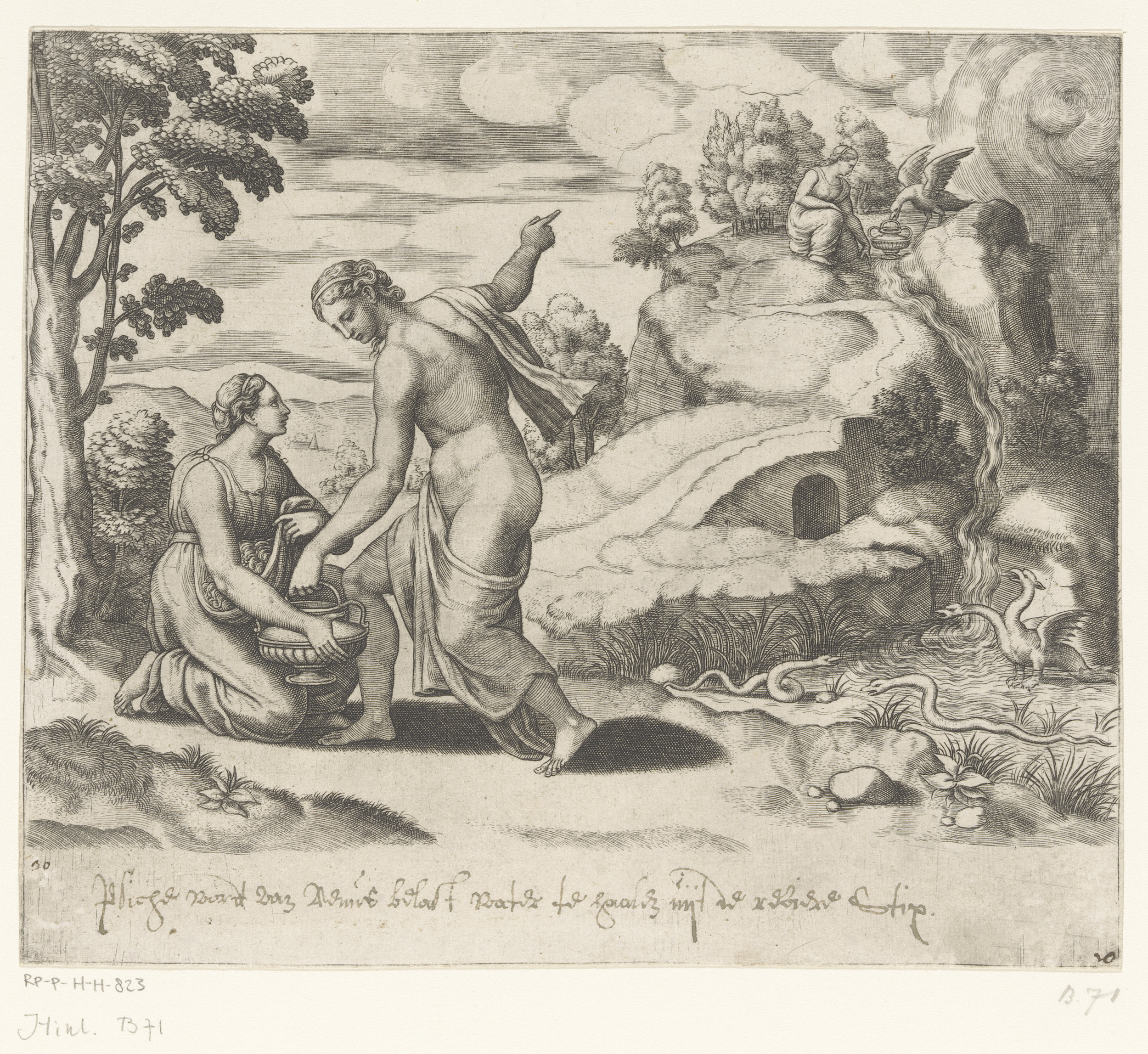 Venus stuurt Psyche naar een bron bewaakt door draken