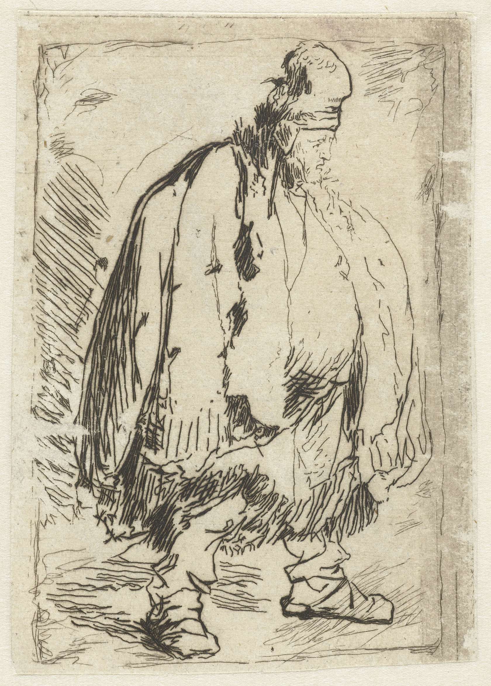 Old man seen from behind, profile right: half figure