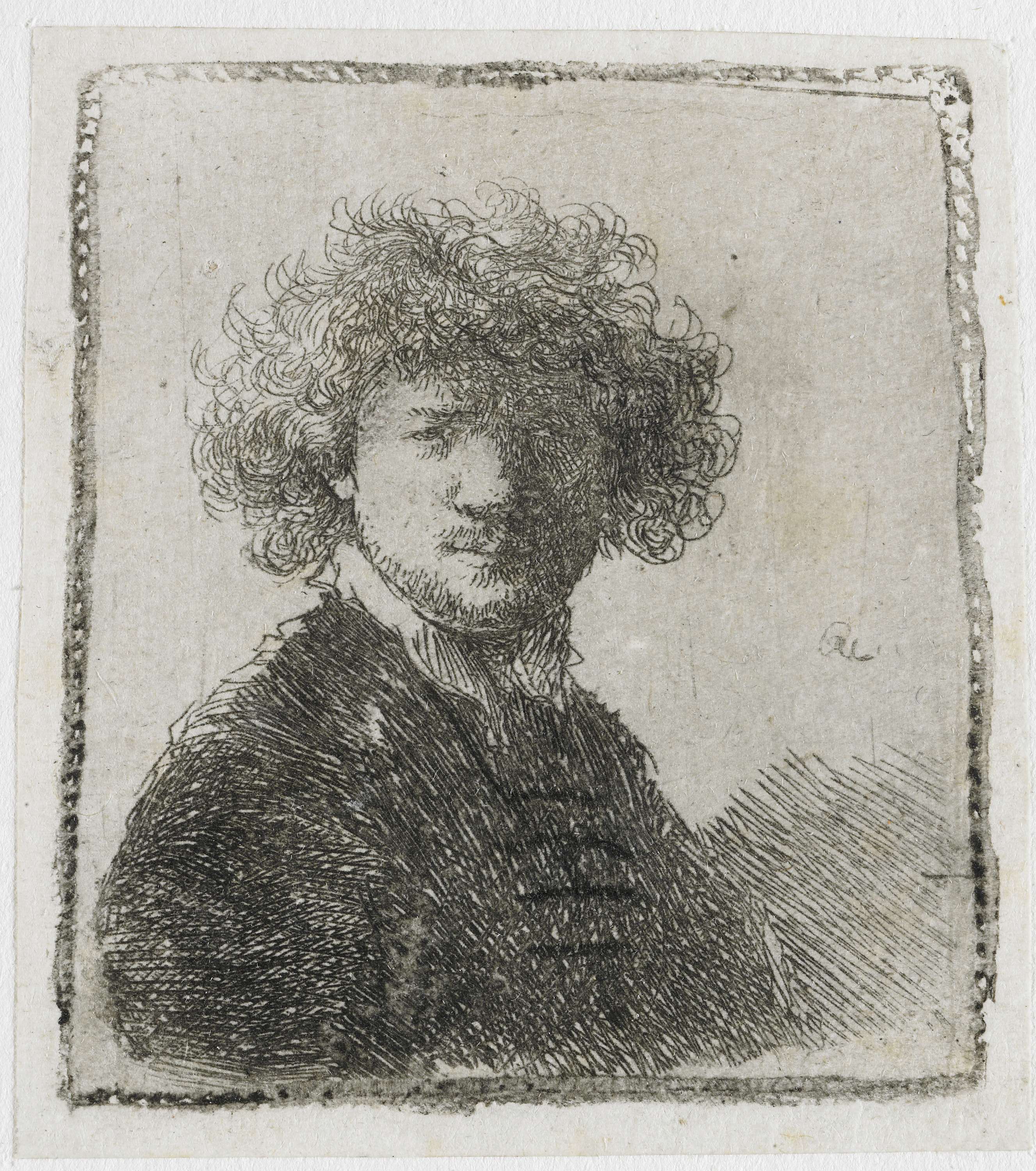 Zelfportret met krullend haar