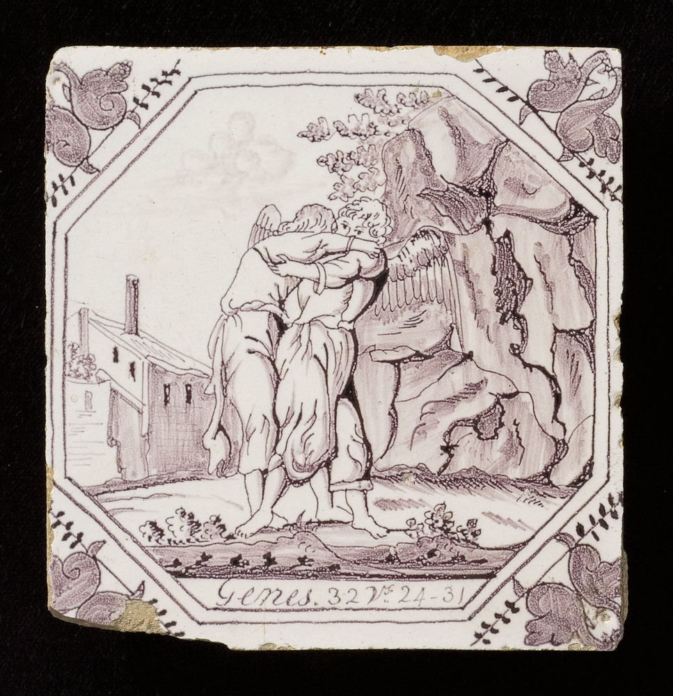 Tegel van keramiek met tinglazuur, voorstellende: Ja...