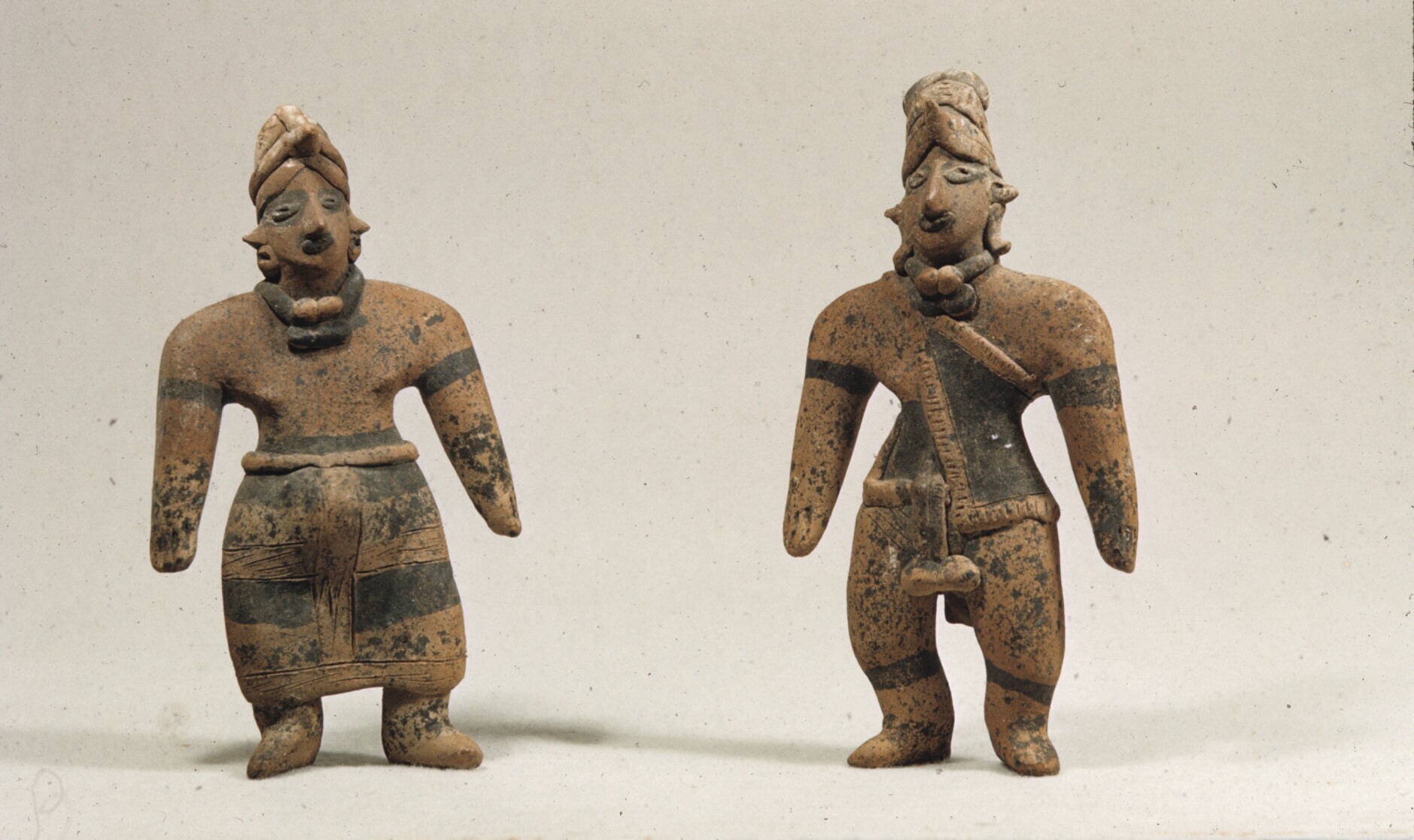 twee aardewerk beeldjes, man resp. vrouw voorstellend