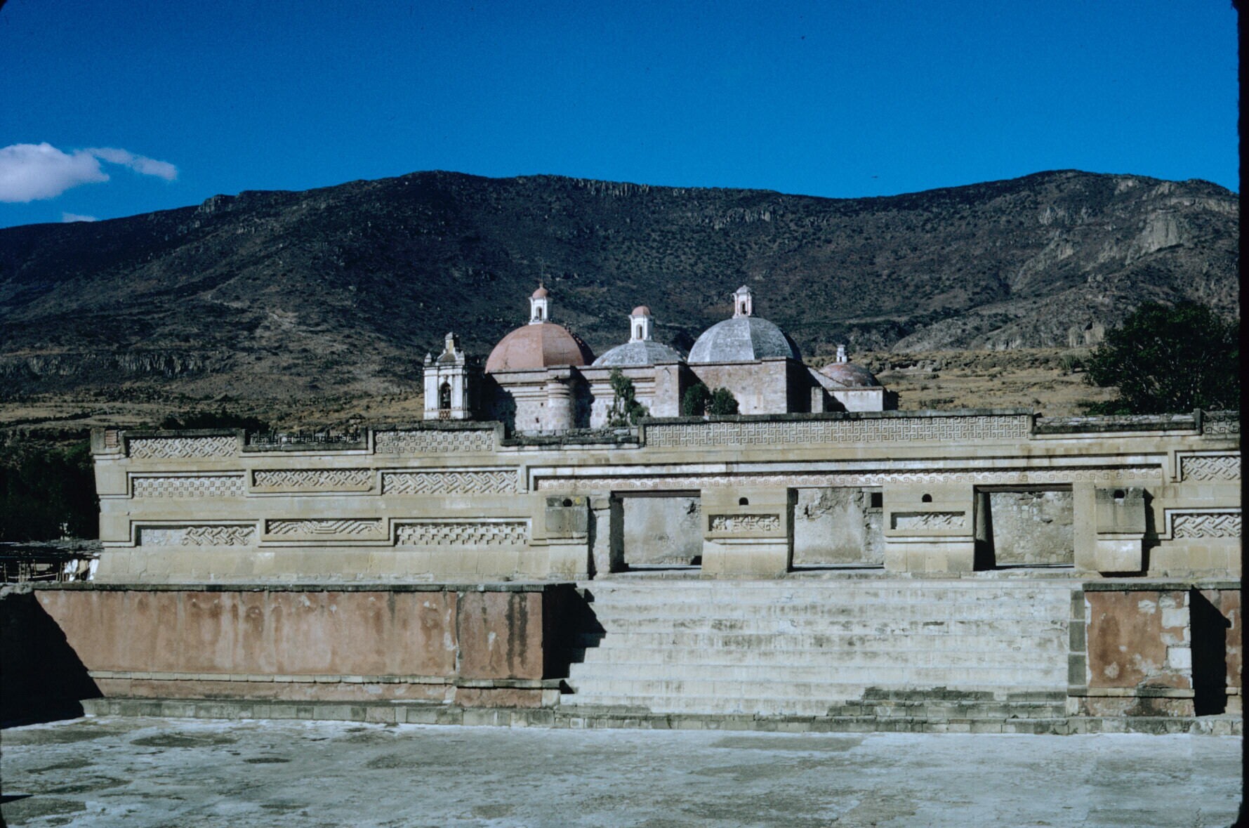 kerk, gebouwd op pre-Columbiaanse pyramide