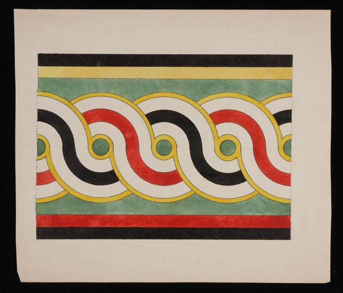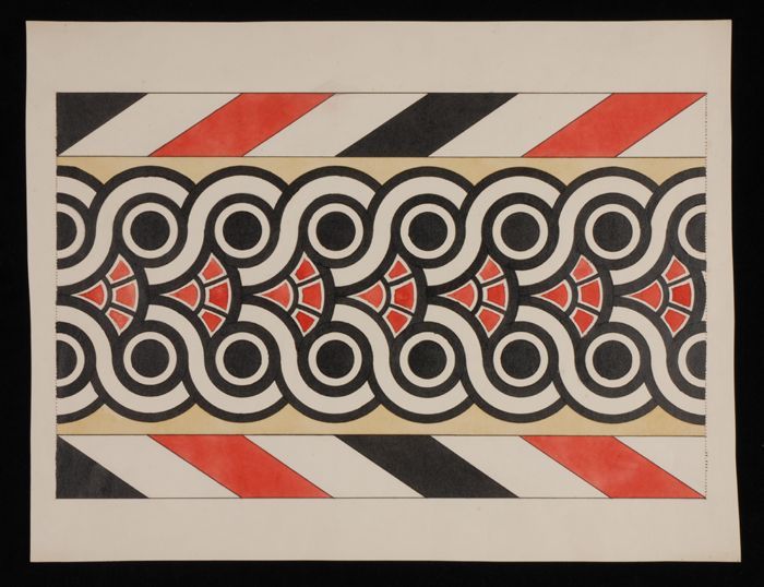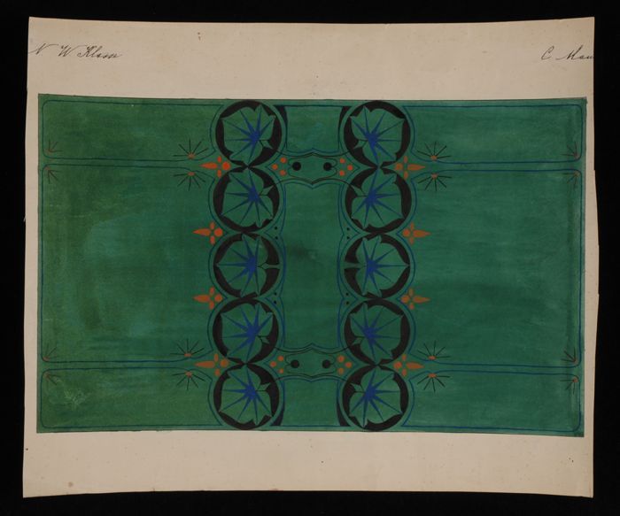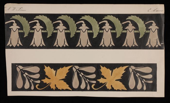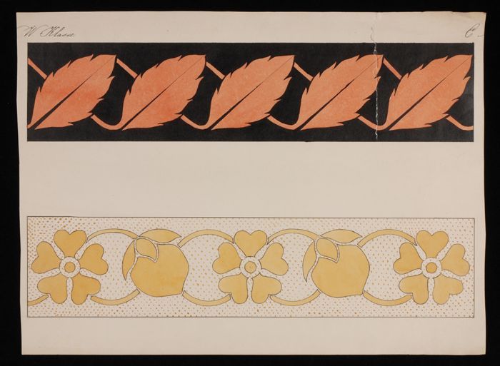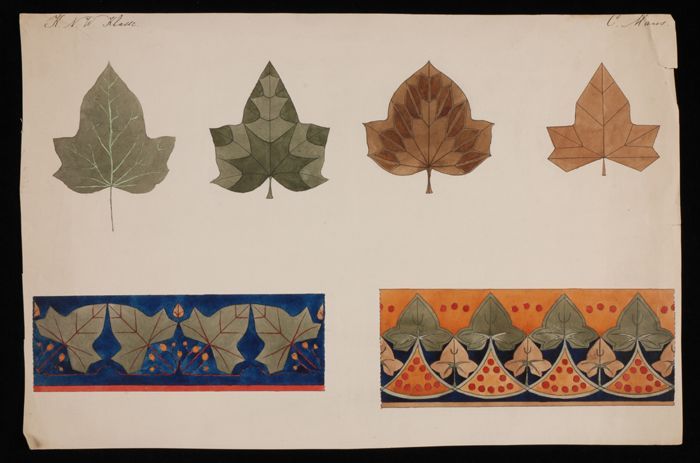 Ontwerptekening, gestileerde bladvormen en twee rand...
