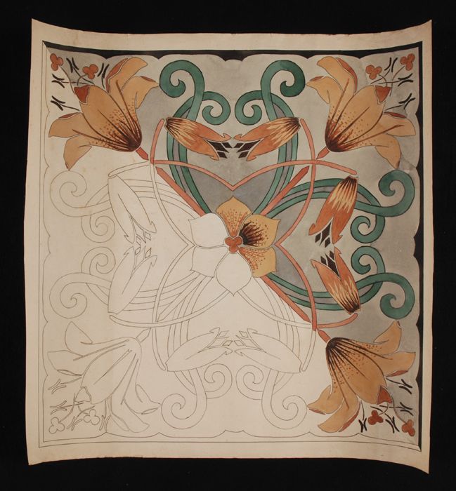 Ontwerptekening, symmetrisch ornament met lelies in ...