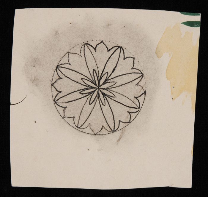 Ontwerptekening, cirkelvorm met achtbladige bloem in...