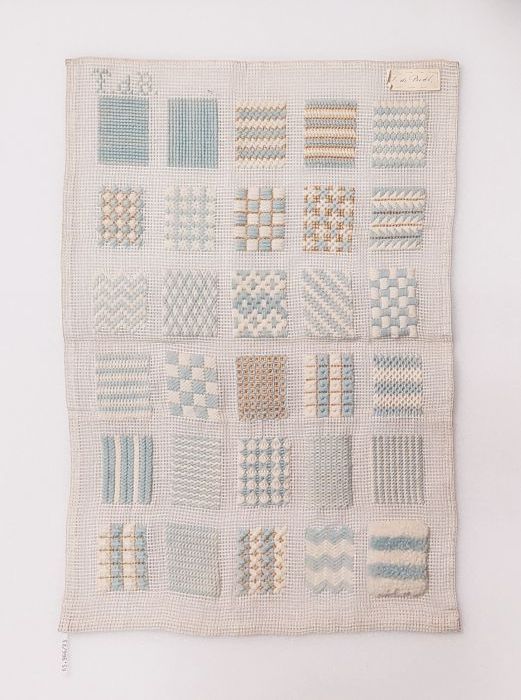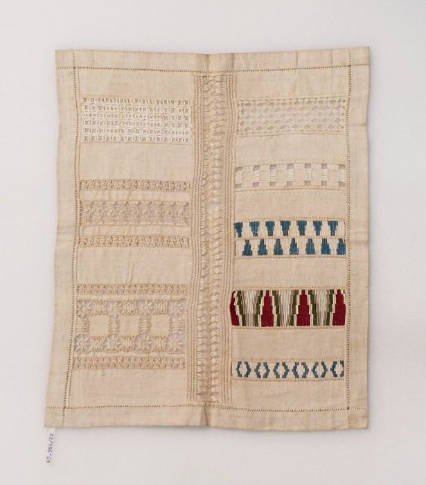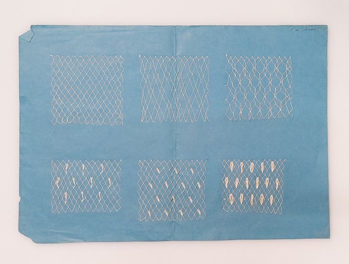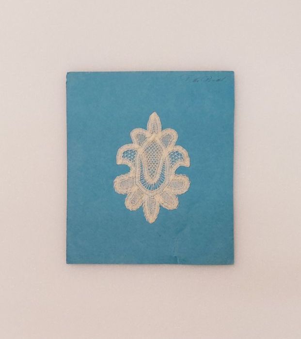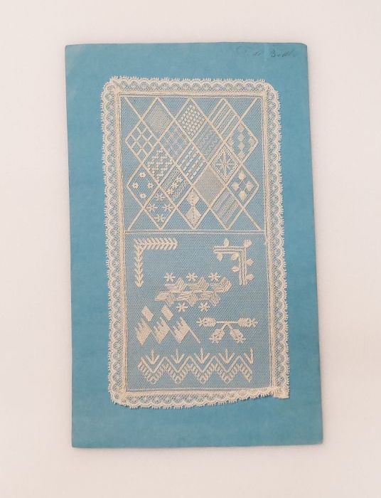 Proefstuk kloskant (?) met verschillende naaldkantvu...