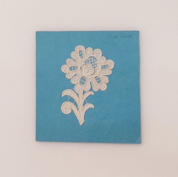 Proefstuk, bloem van wit batist met witborduurwerk e...