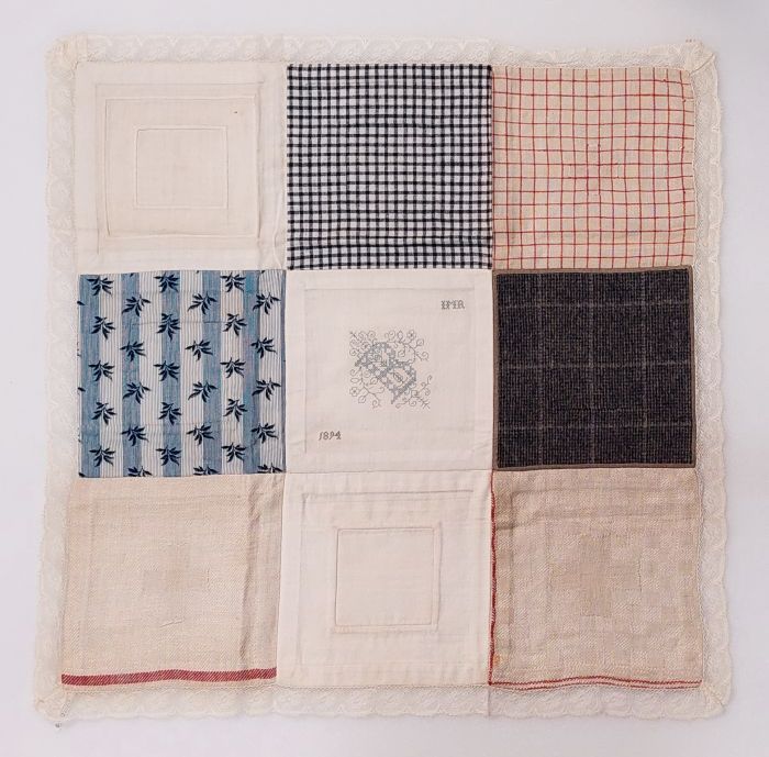 Stukkenlap, negen verschillende vierkante lapjes met...