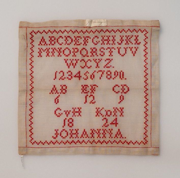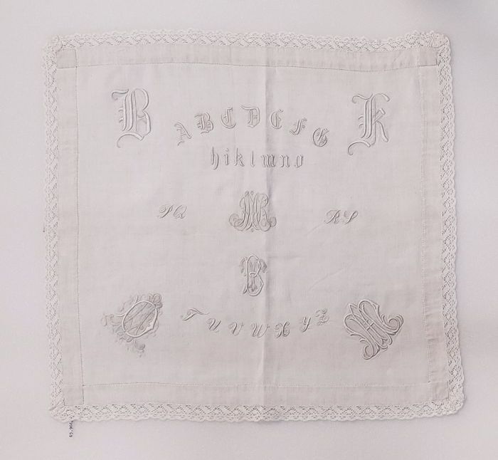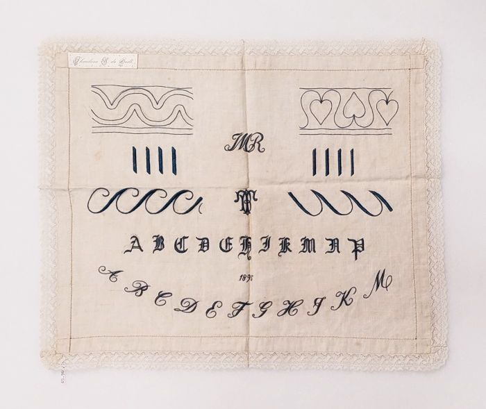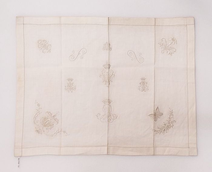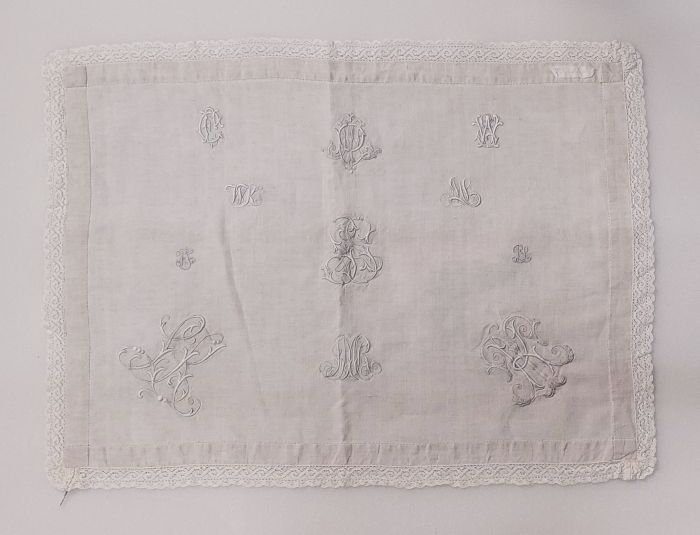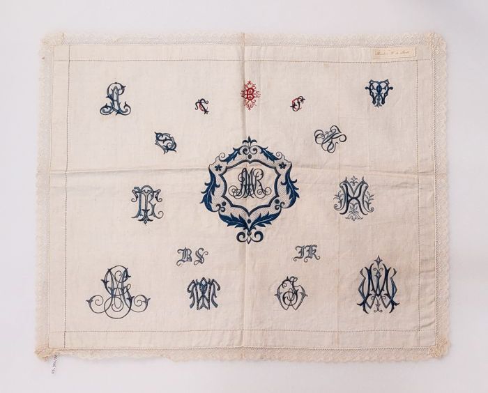 Letterlap met monogrammen en bloemen in Frans borduu...