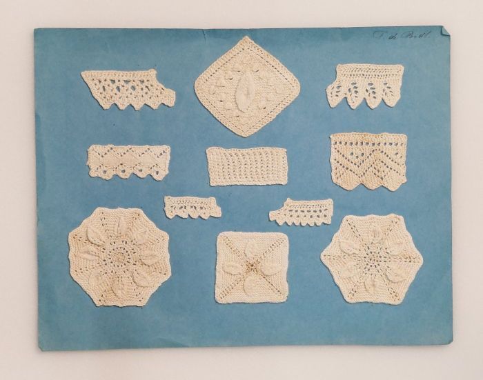 Elf proefstukken ajourbreiwerk in fijn crèmekleurig ...
