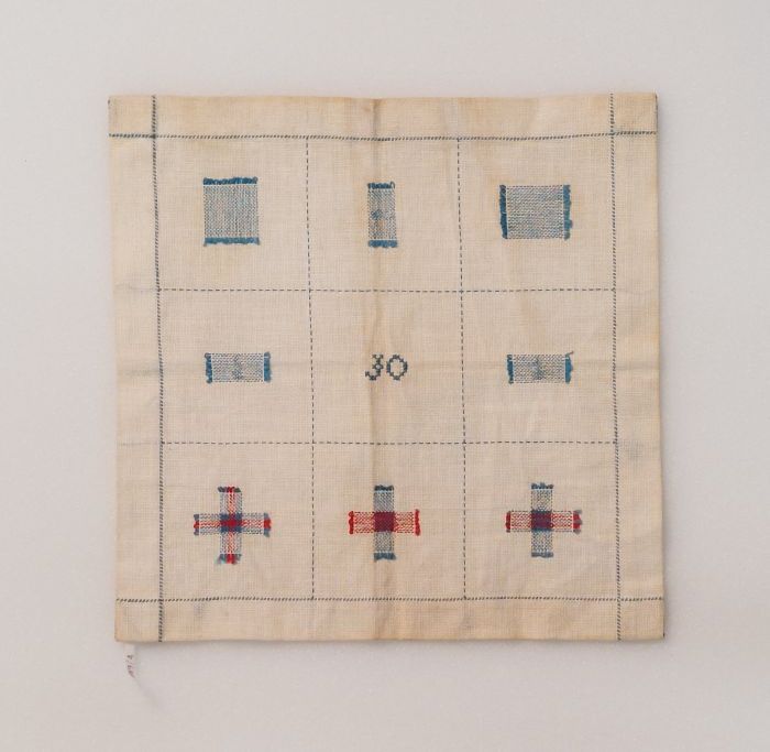Nadenlap van wit katoen met oefeningen in naden en s...