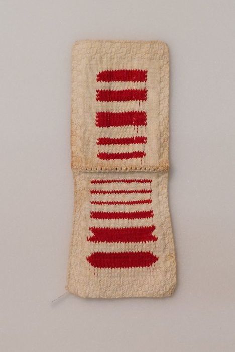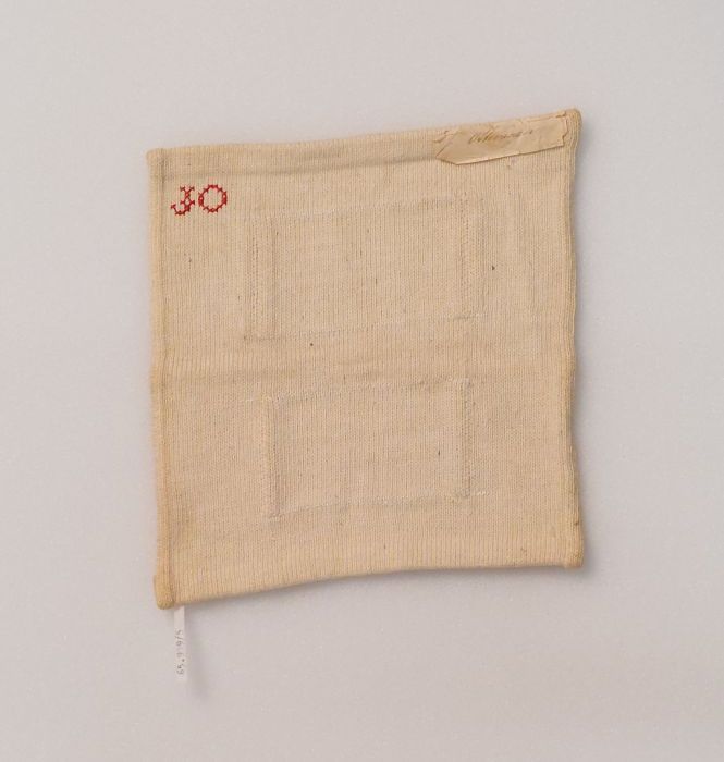 Proefstuk tuledoorstop (?) in wit katoen, vastgezet ...
