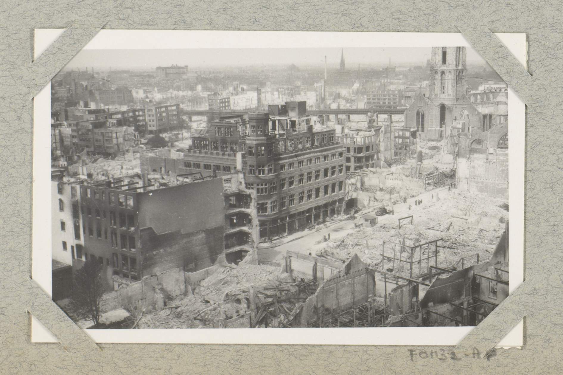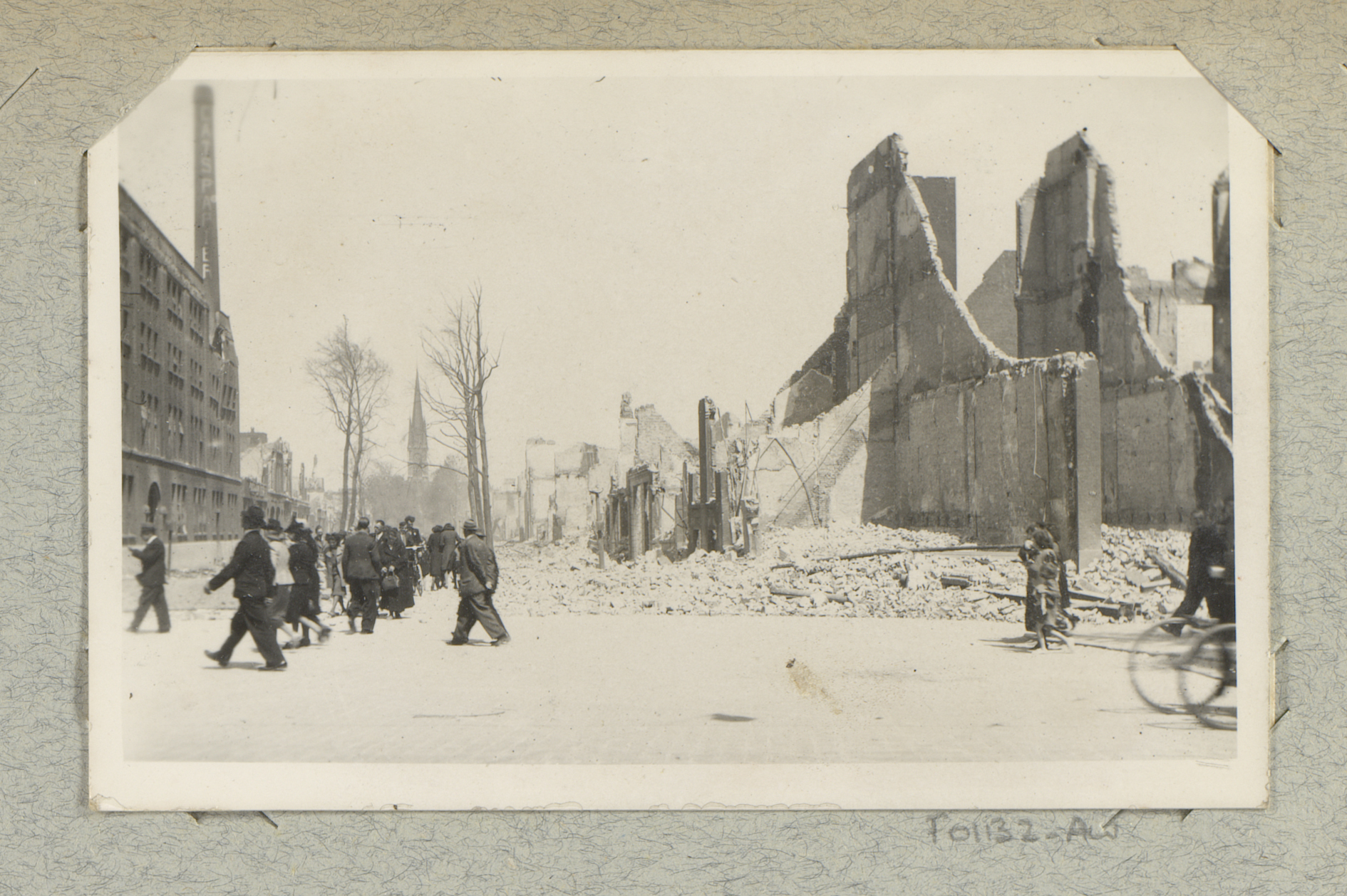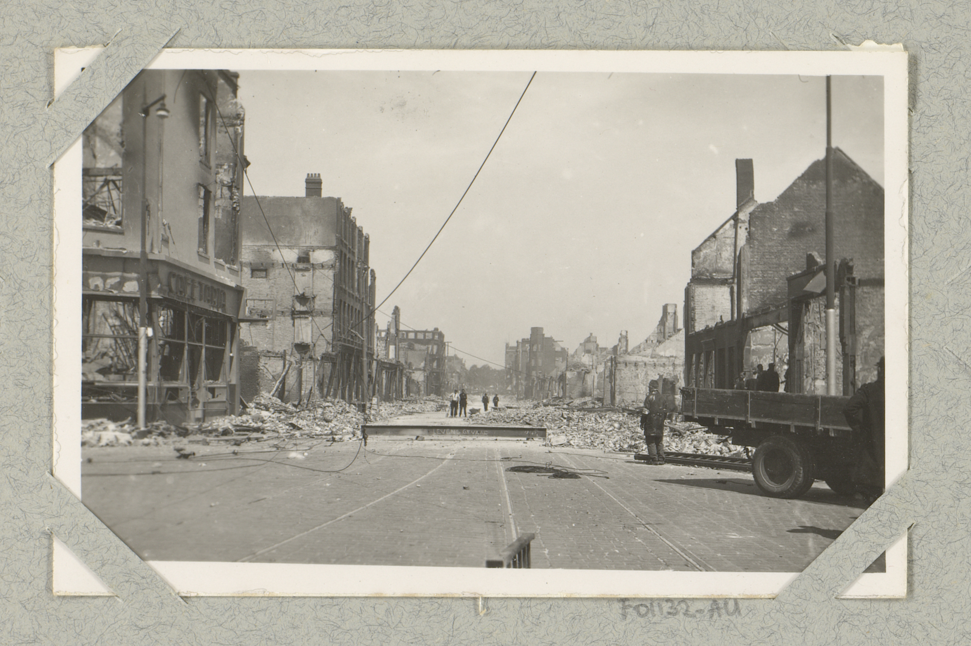 Ruïnes van gebouwen aan de Hoogstraat, gezien vanaf ...