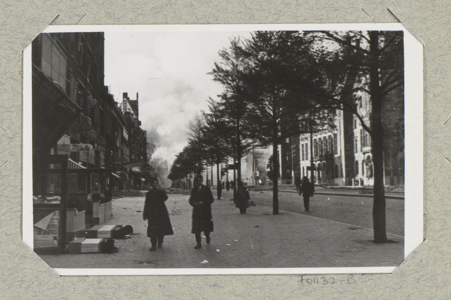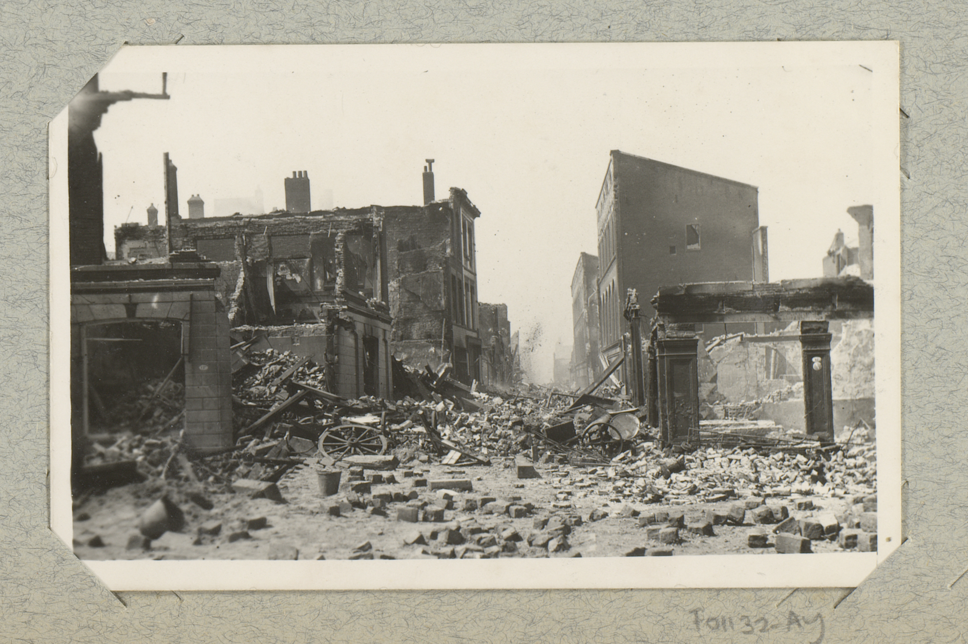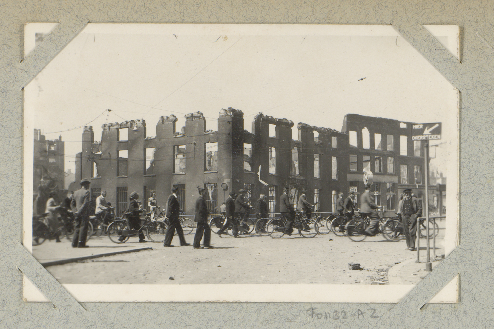 Ruïnes van gebouwen aan de Hoogstraat, gezien vanaf ...