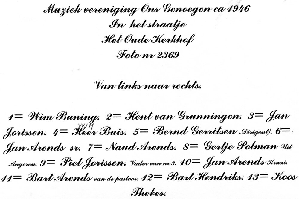 Muziekvereniging Ons Genoegen Straat Oude Kerkhof 1946