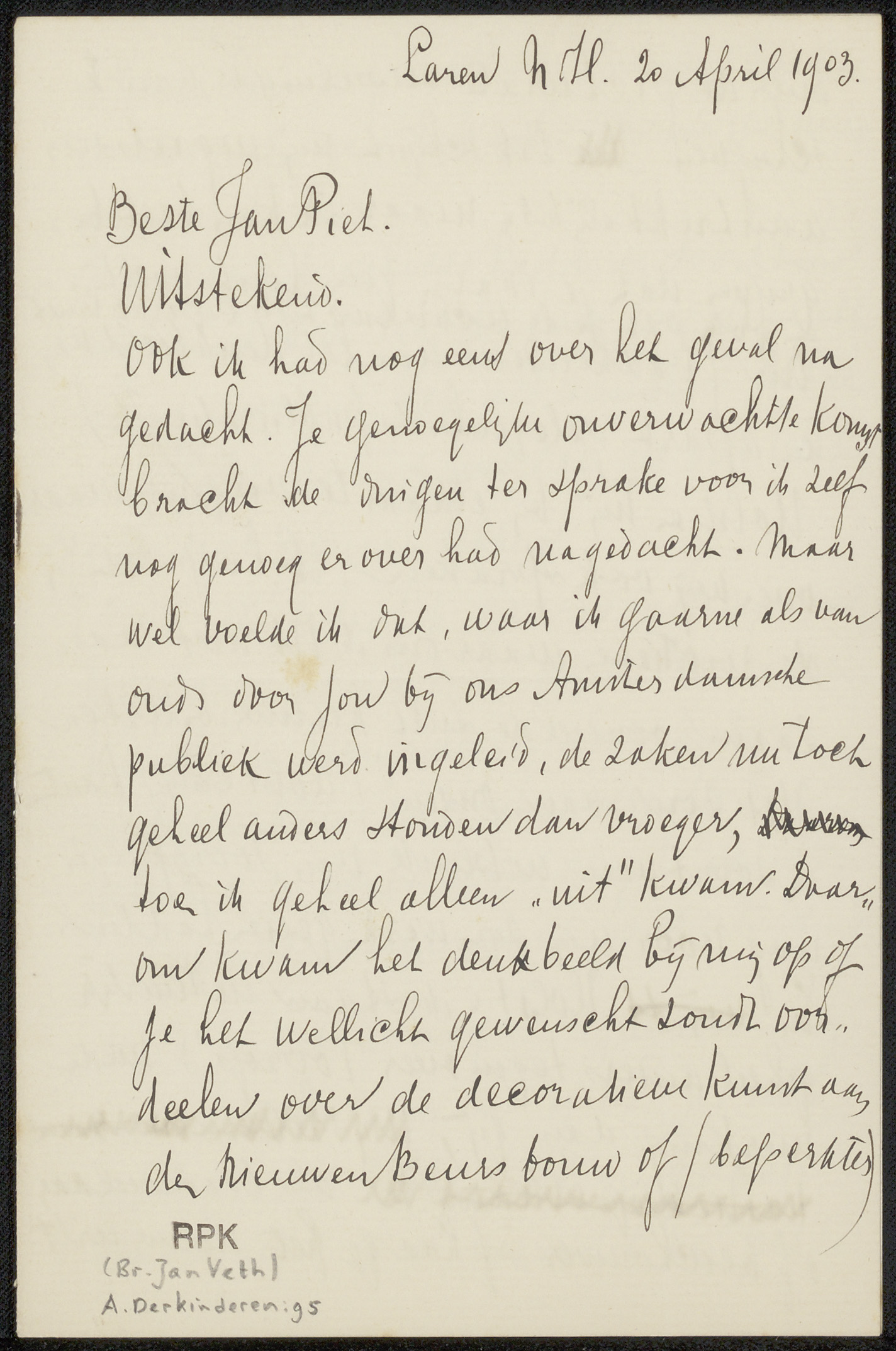 Brief aan Jan Veth