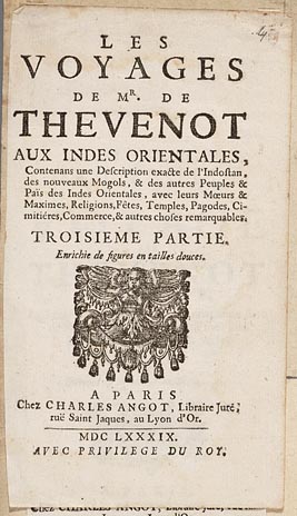 Les voyages de mr De Thevenot aux Indes Orientales, ...