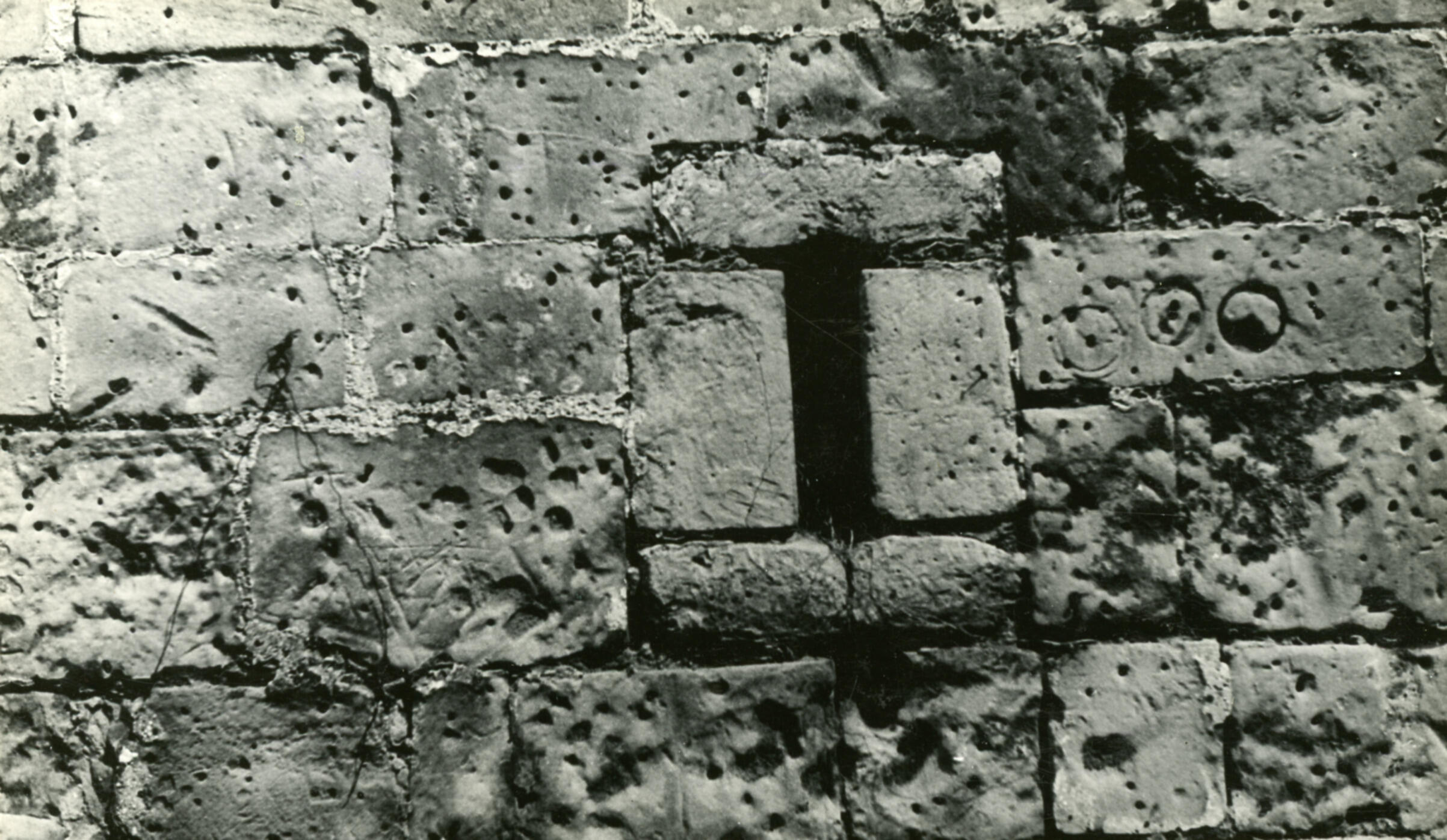 Gevelsteen uit 1644, Hasselt, 1947 (zwart-wit foto)