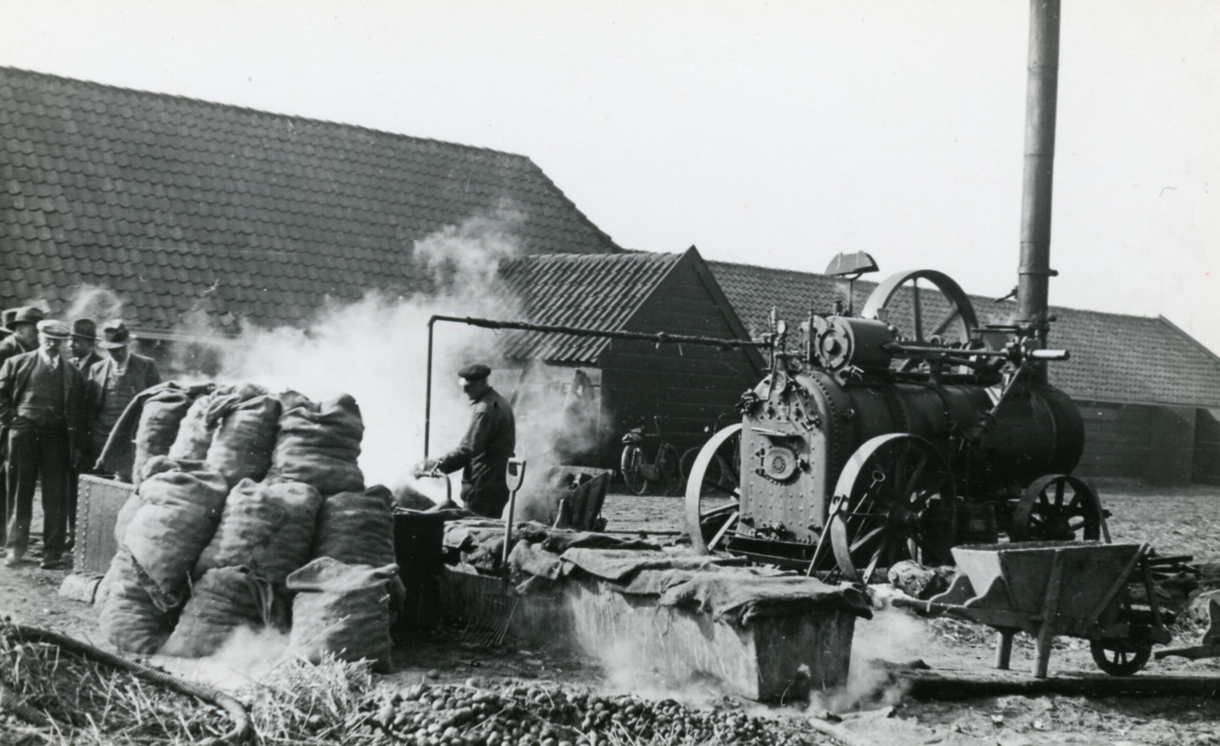 Aardappels stomen, Wilhelminadorp, 1935 (zwart-wit f...