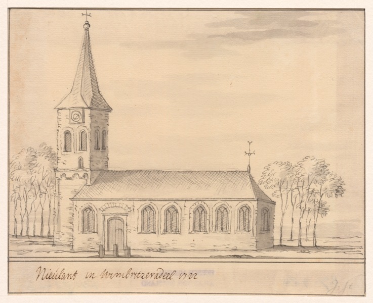 Gezicht op de kerk te Sandfirden in Wymbritseradeel