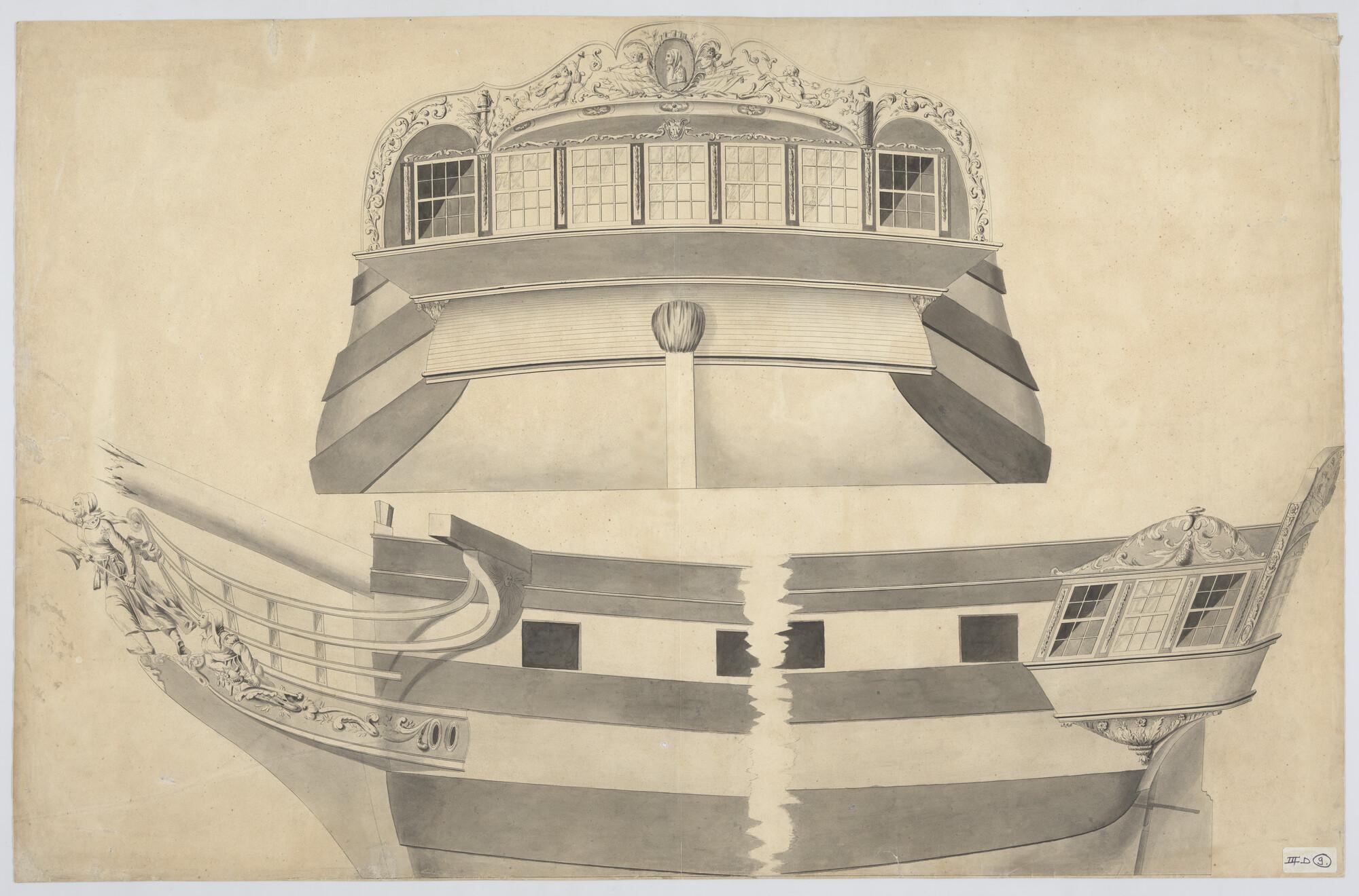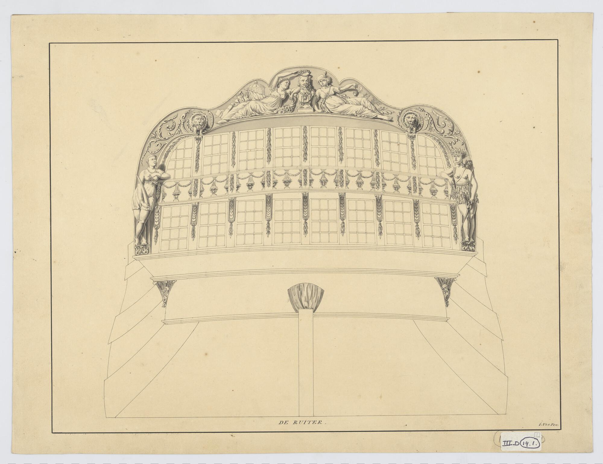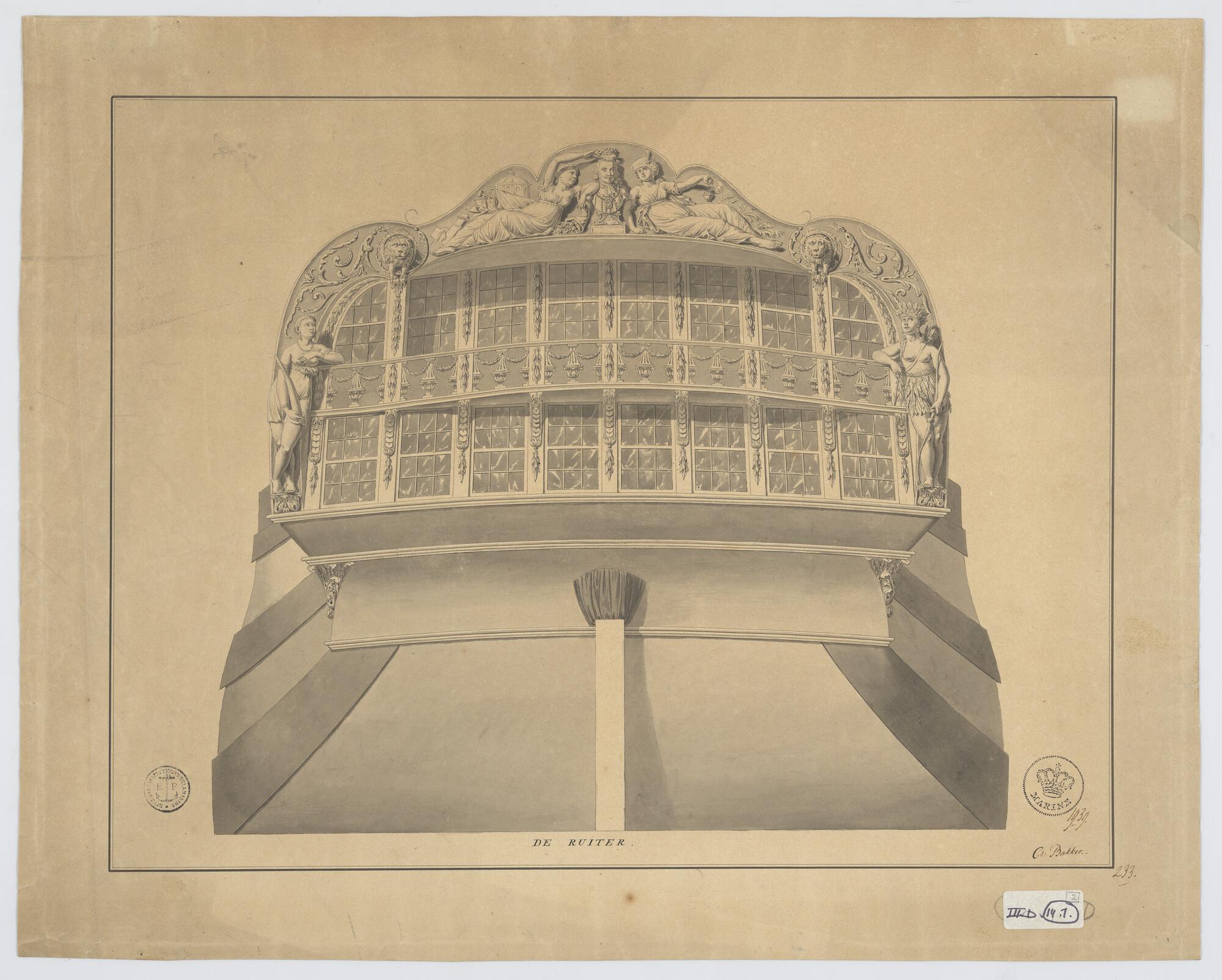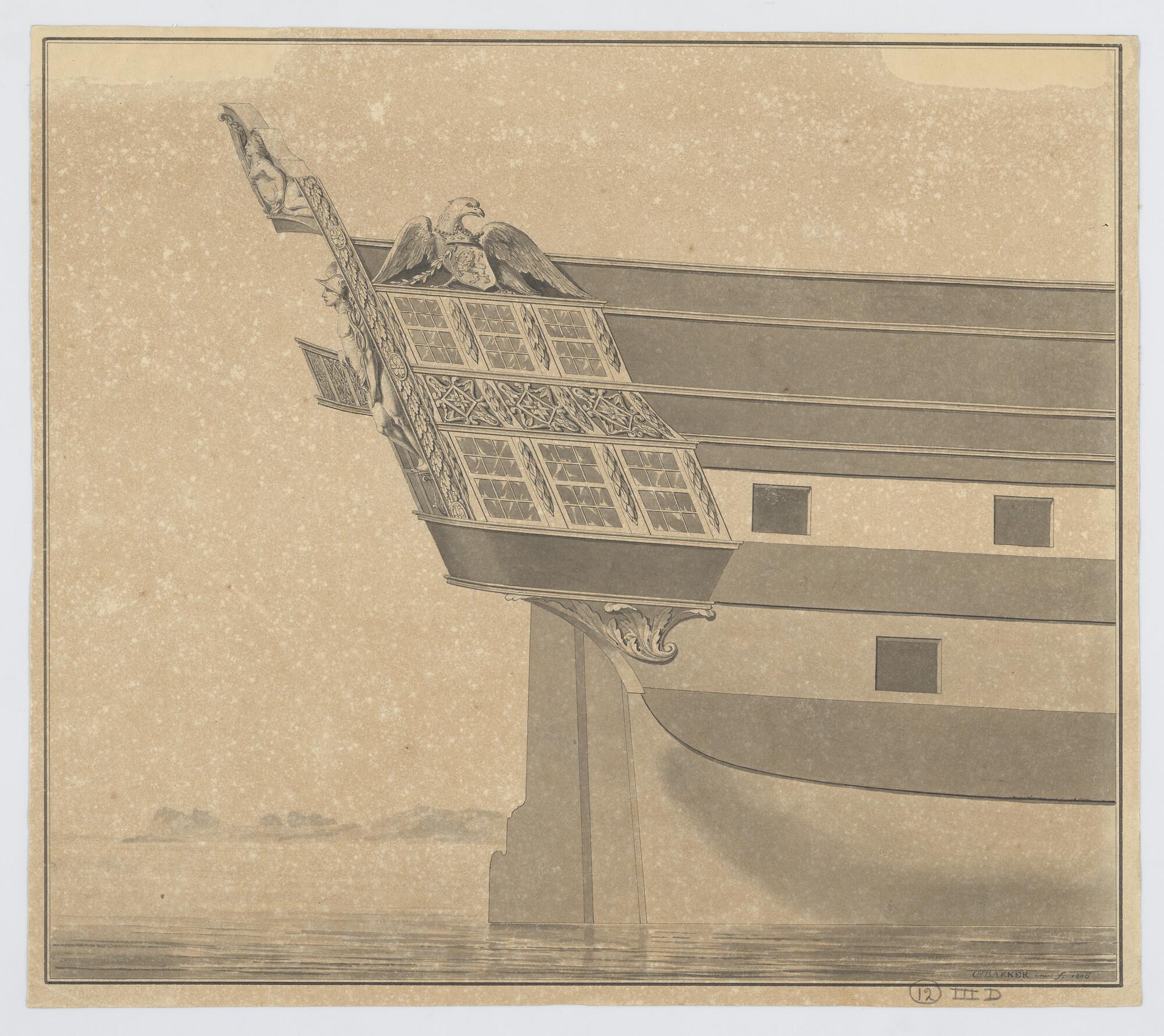 Spiegel- en schegversiering van het fregat 'Kenau Ha...