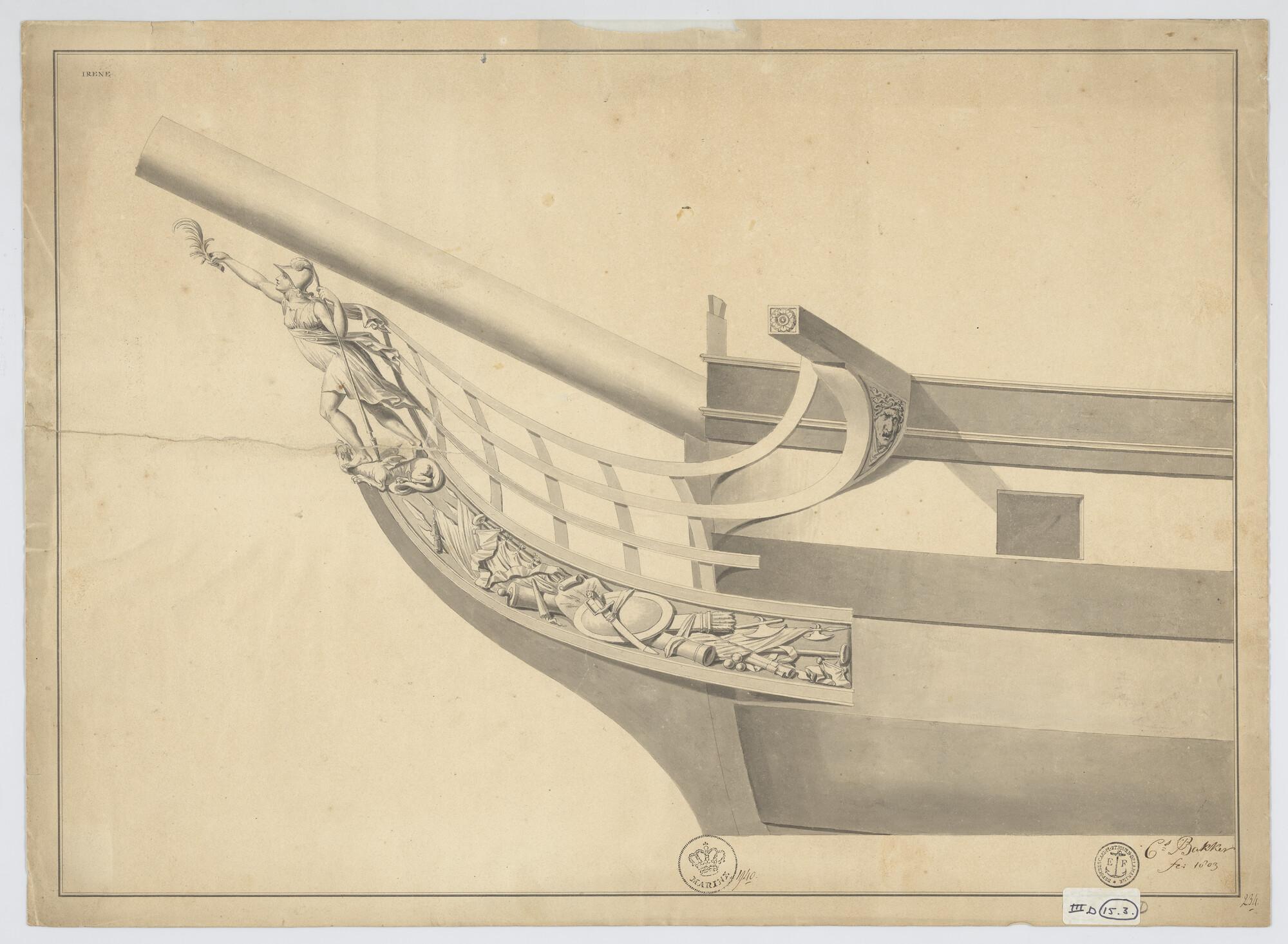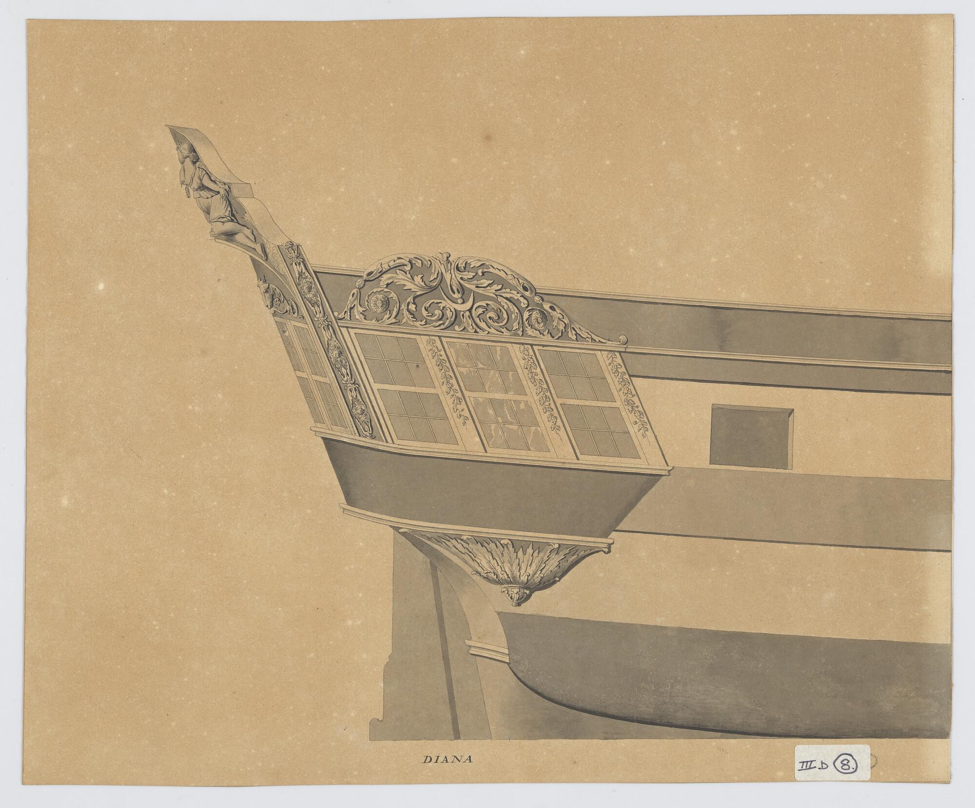 Ontwerp zijgalerij van het fregat 'Diana'