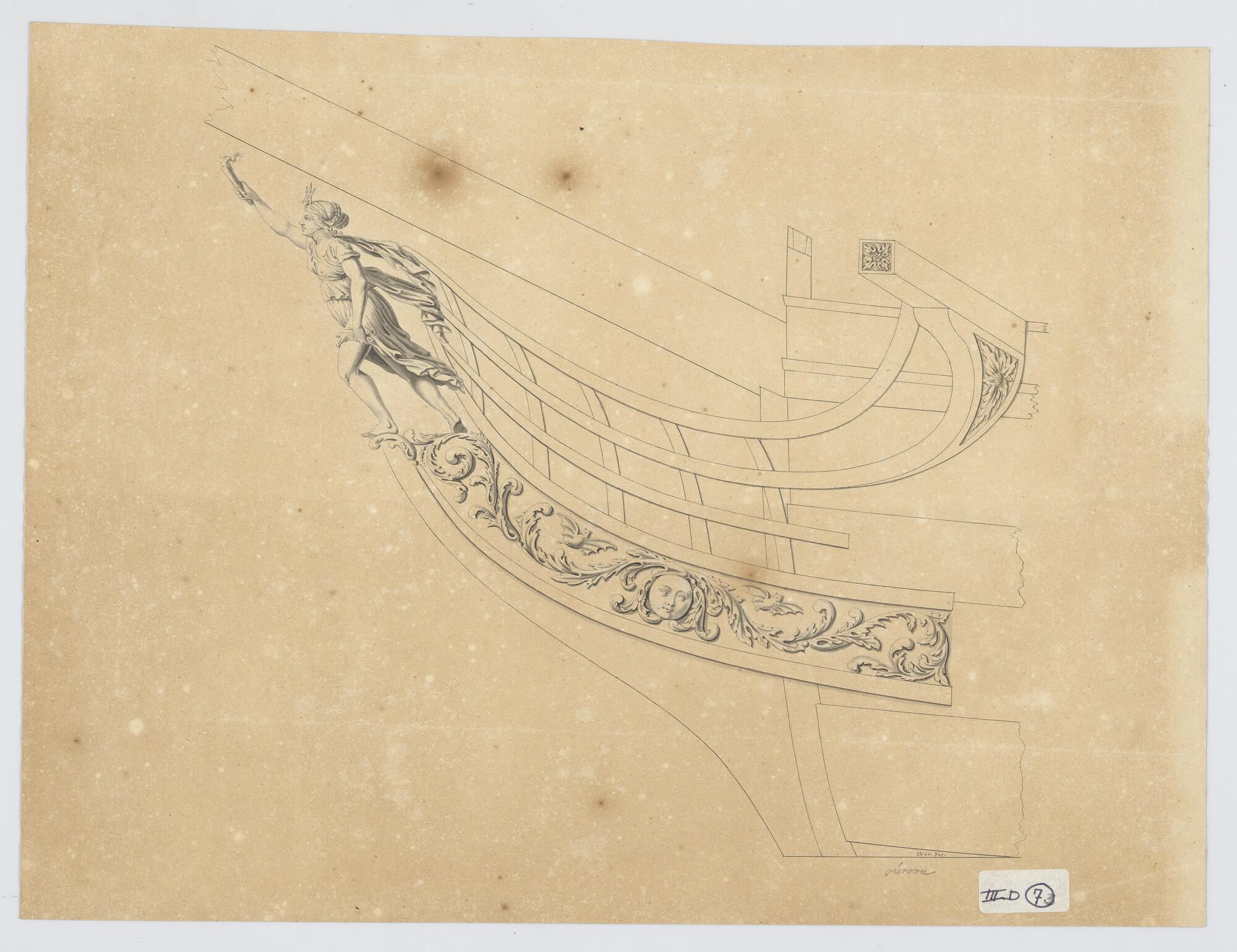 Fregat Aurora 1802 Schegbeeld, vrouwen figuur met st...