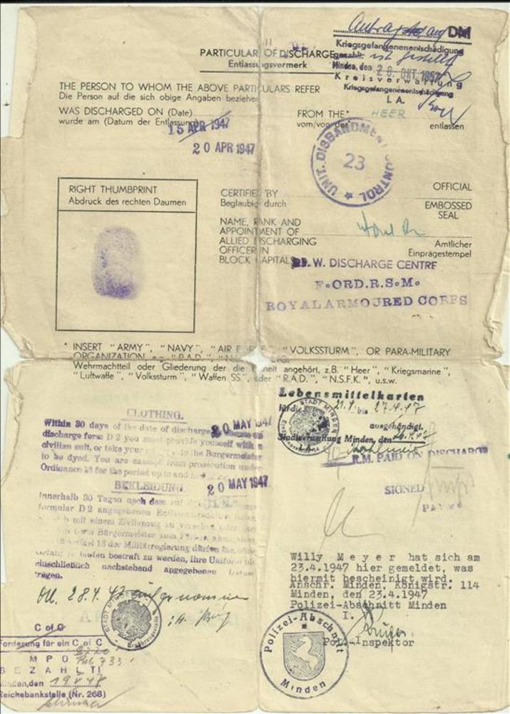 Entlassungsschein/certificate of discharge op naam v...