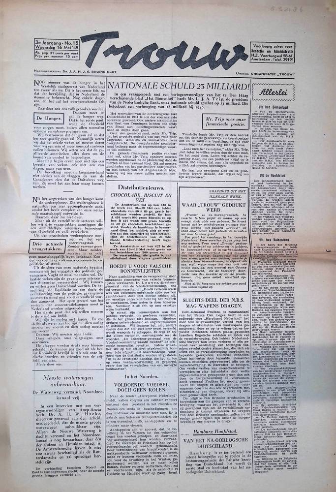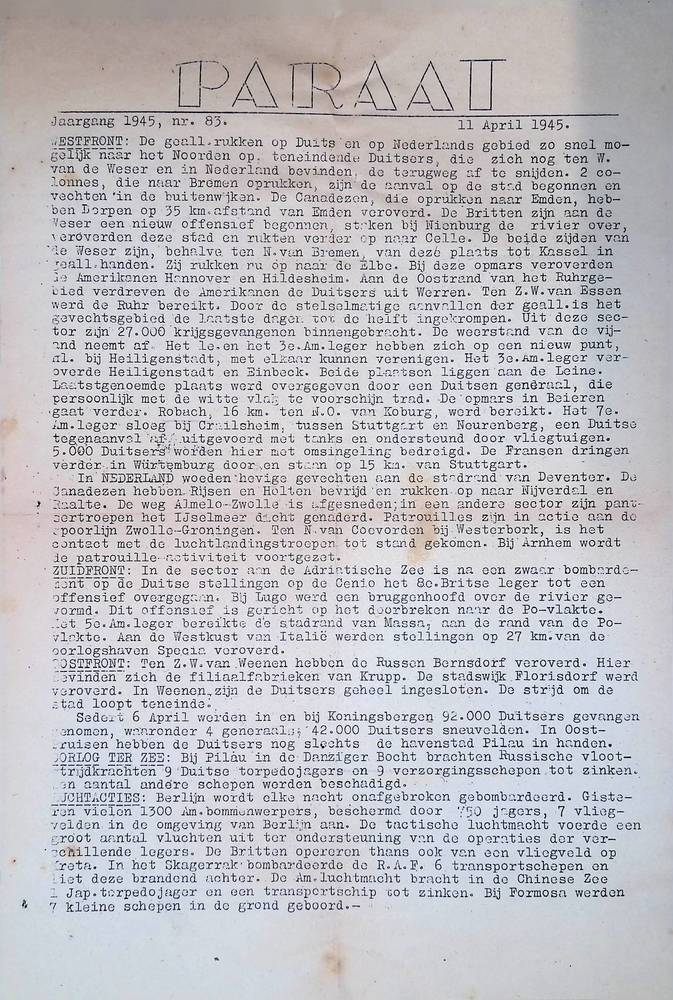 De Waarheid, nieuwsbulletin van 7 mei 1945