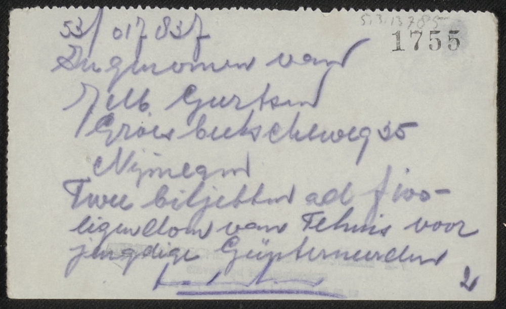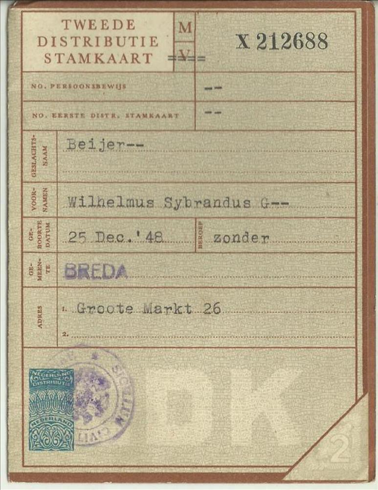 Tweede Distributiestamkaart van : Beijer, Wilhelmus ...