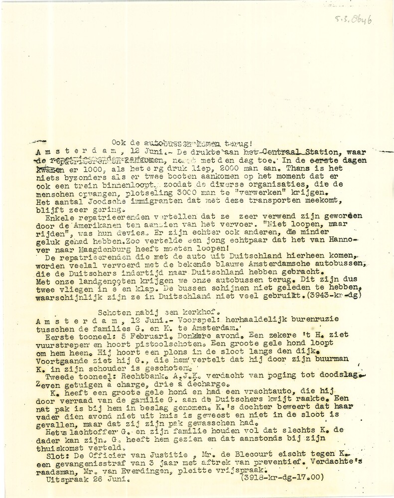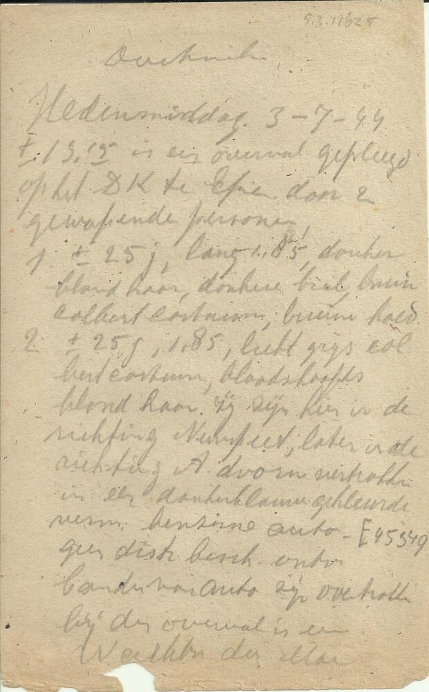 Handgeschreven alarmeringsbericht, 3 juli 1944, betr...