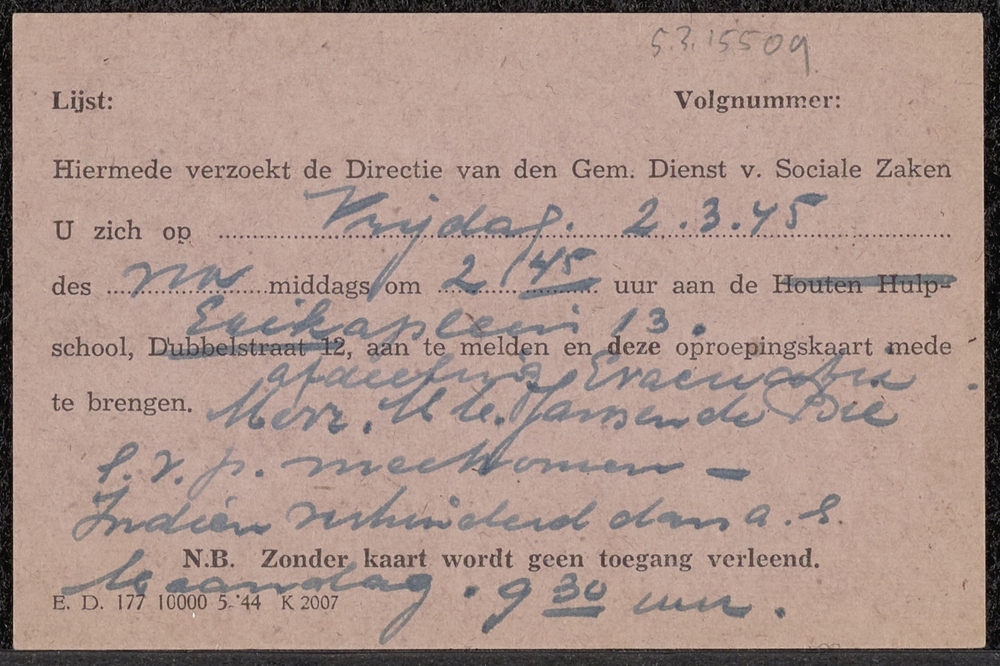 Kaartje van het Gewestelijk Arbeidsbureau Rotterdam ...