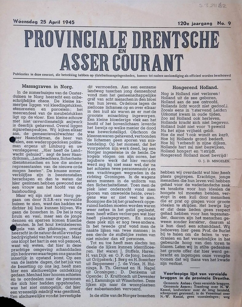 Provinciale Drentsche en Asser Courant, 25 april 194...