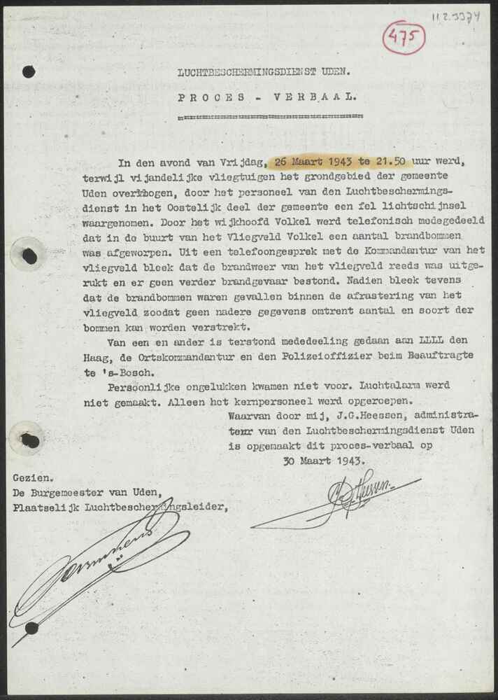 Proces-verbaal Luchtbeschermingsdienst Uden 30 maart...