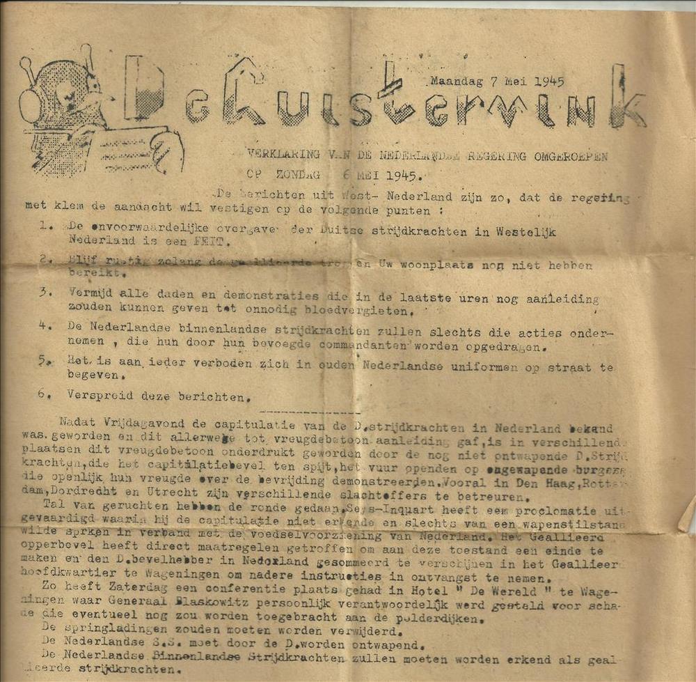 De Luistervink, maandag 7 mei 1945