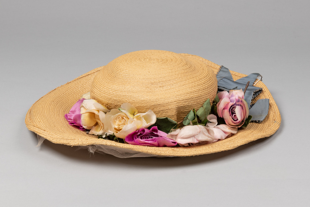 Strohoed met zijden rozen