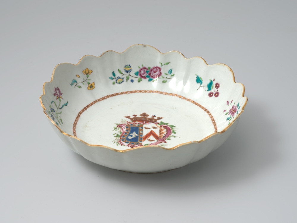 Porseleinen slabak met het familiewapen Crommelin