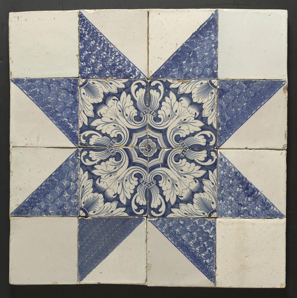 Tegeltableau van keramiek met tinglazuur, voorstelle...