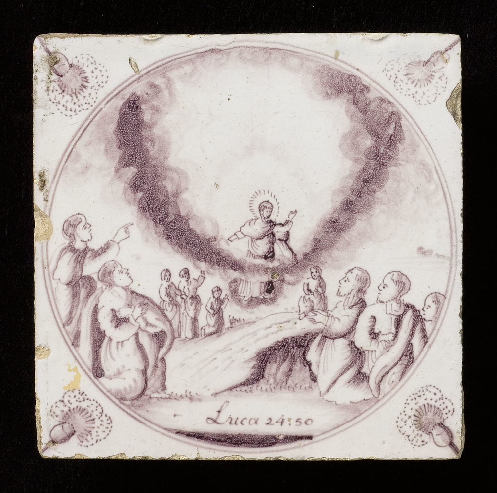 Tegel van keramiek, tinglazuur, voorstellende: De he...